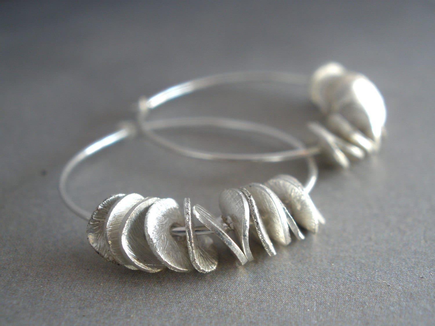 Textured Sterling Silver Hoop Earrings, Small Thick Silver Hoop Ear...