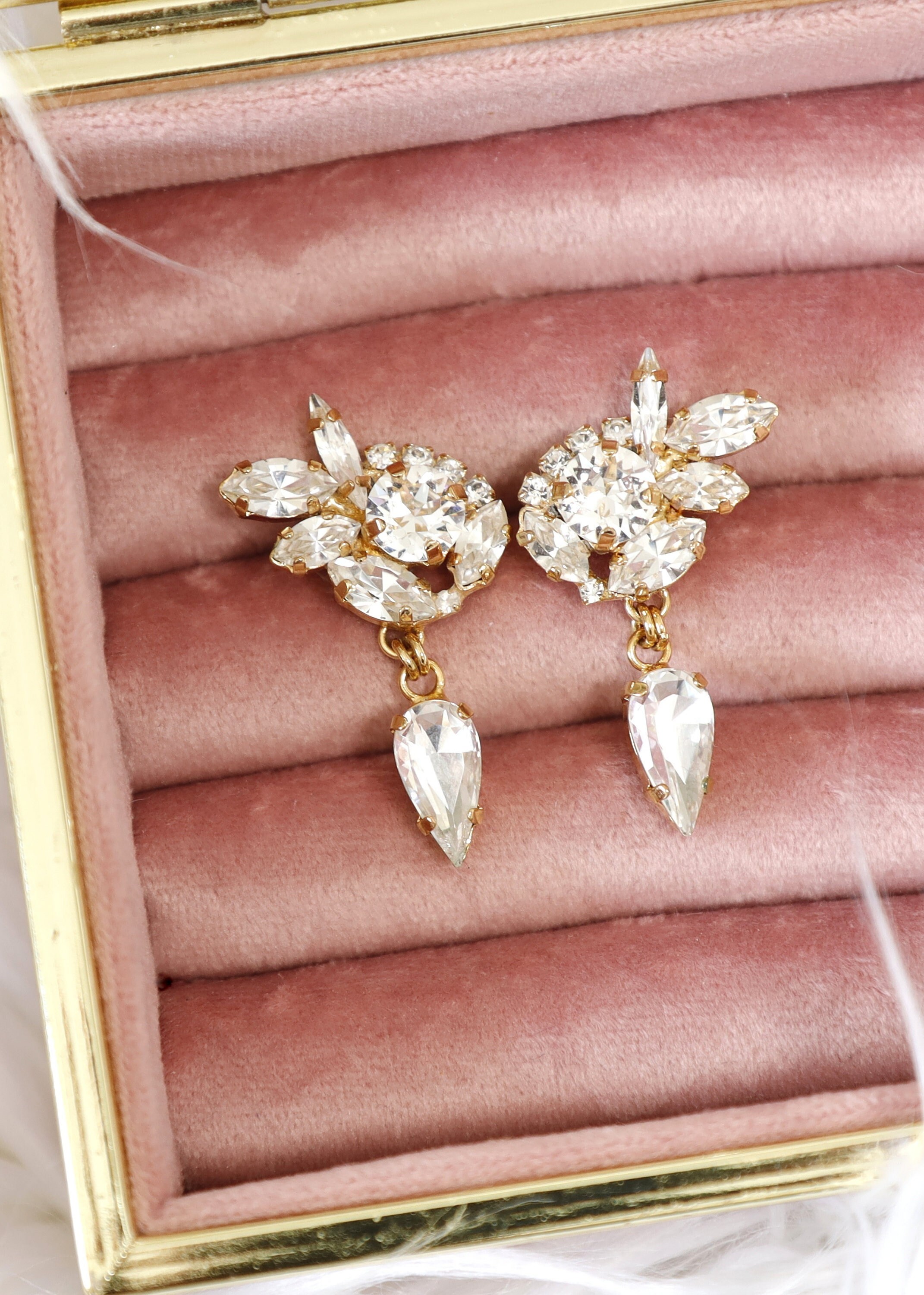 "Bridal Earrings-These crystal chandelier drop earrings feature a design that will get you noti...