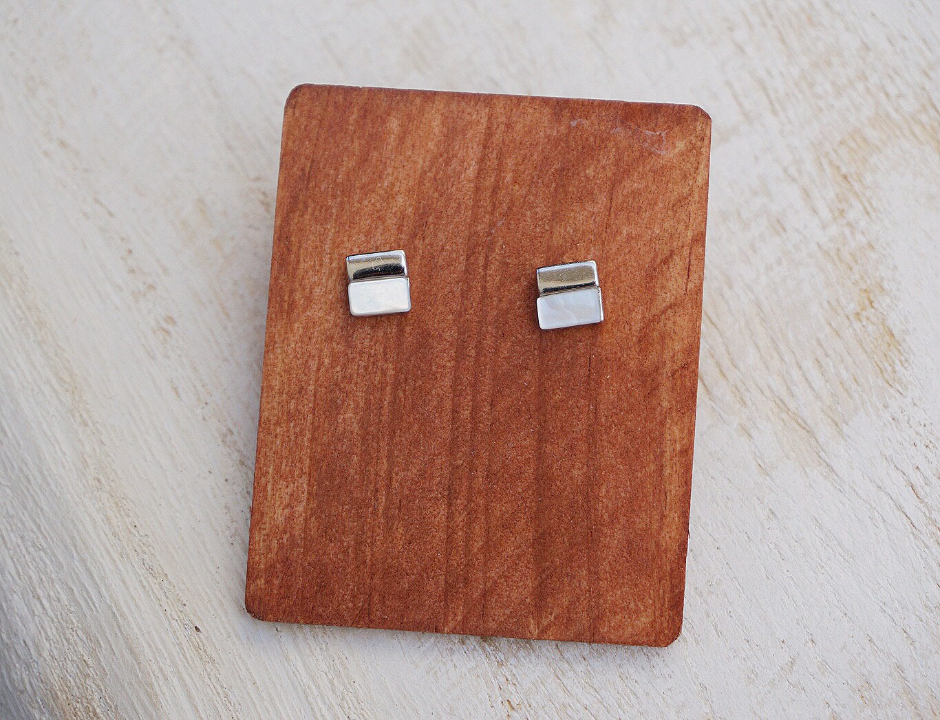 square stud earrings/sterling silver square stud earrings/shell stu...