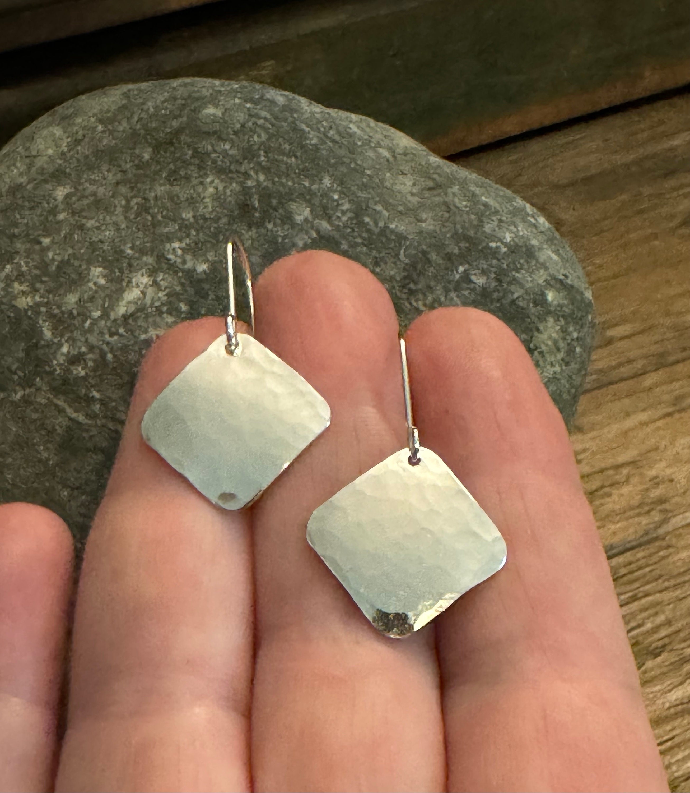 Square Sterling Silver Hammered Earrings - Square Sterling Silver E...