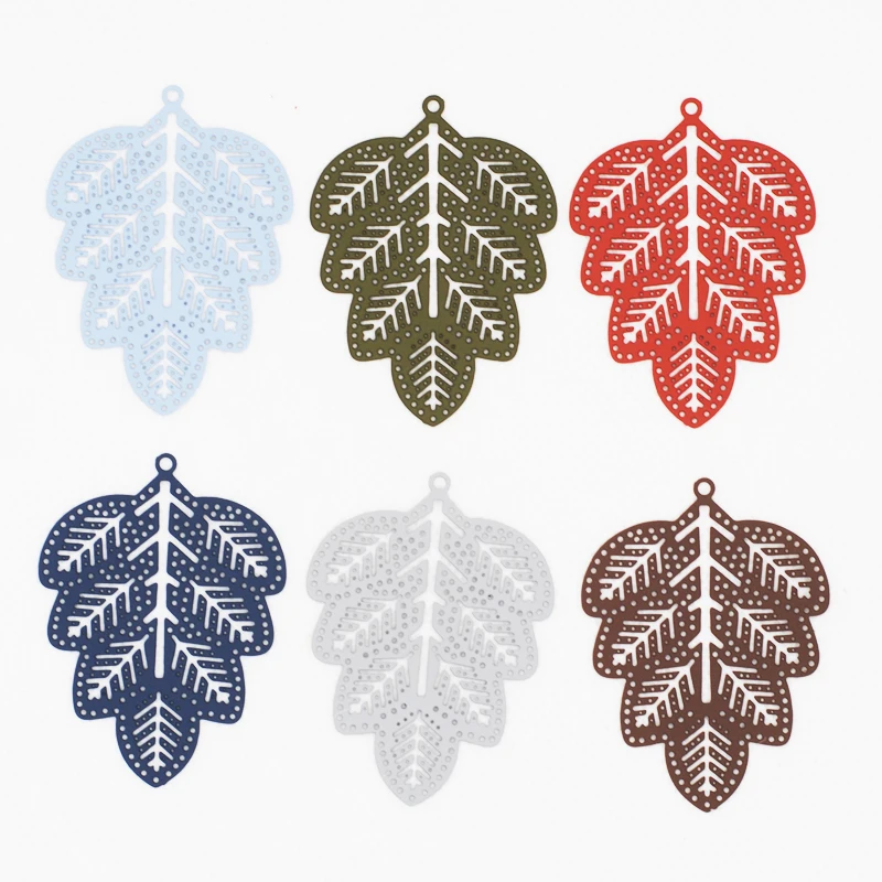 10pcs/Lot Leaves Zinc Alloy Filigree Stamping Charms Hollow Plant Leaves Pendants For DIY Earring Ha...
