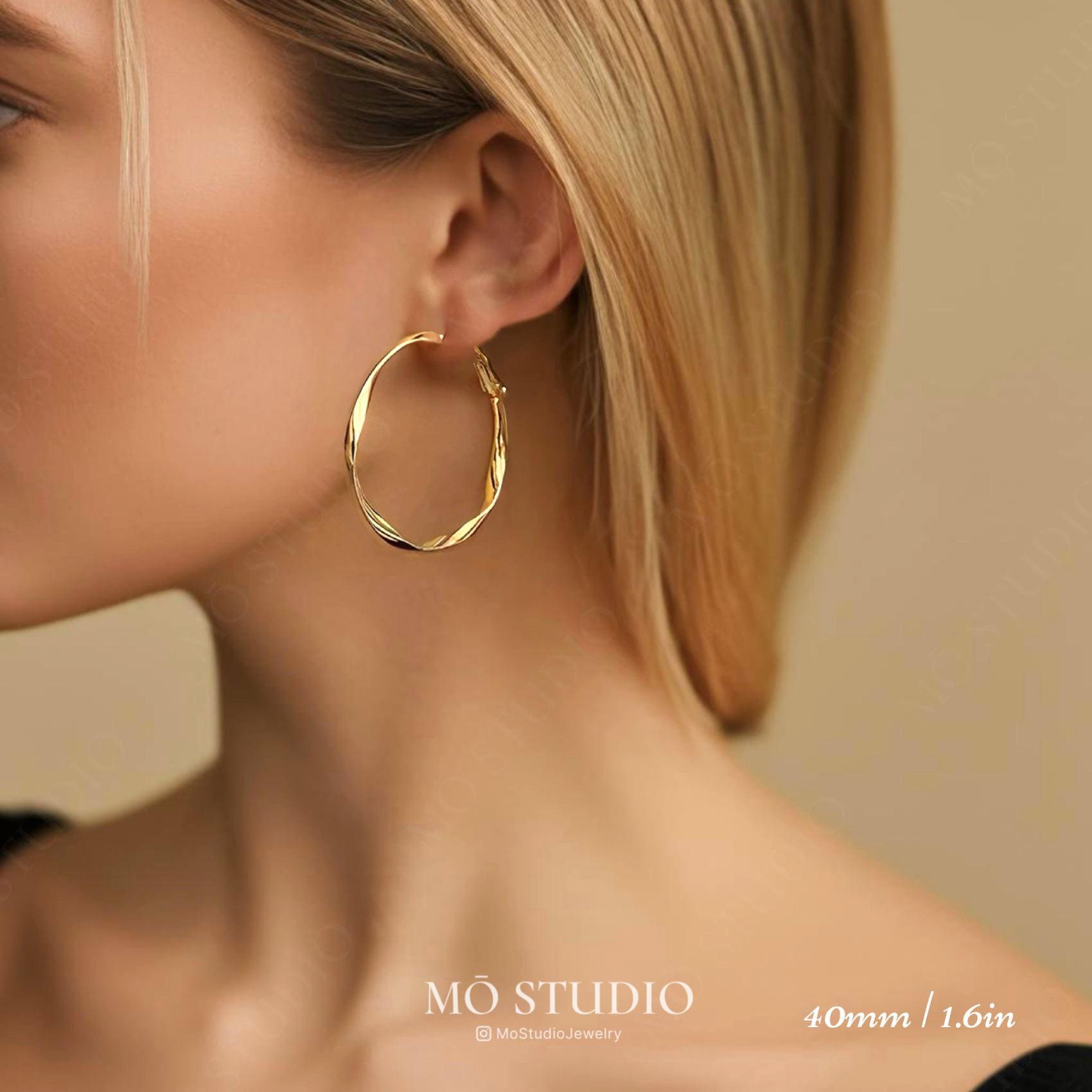 Twisted Hoop Earrings 14k Gold, Wide Hoop Earrings, Large Hoop Earr...