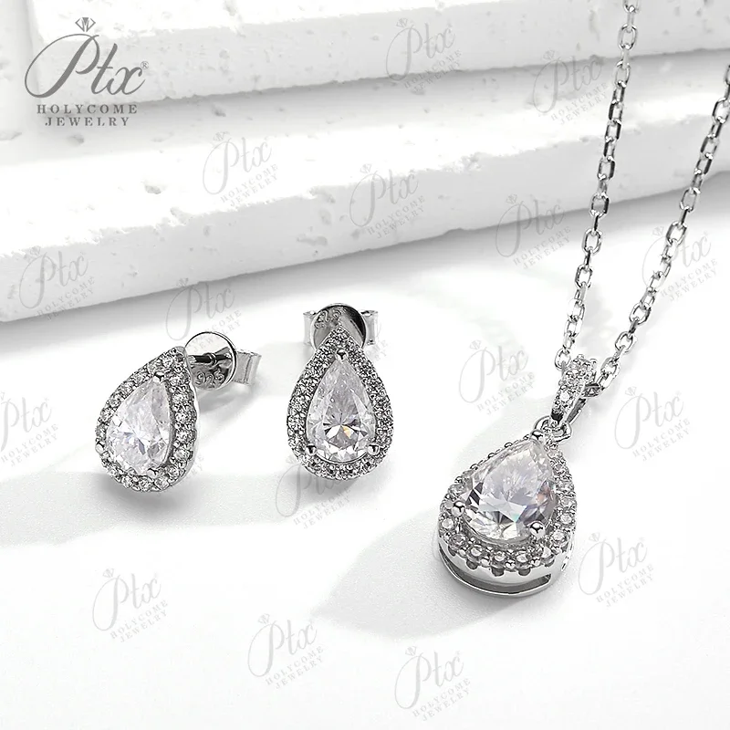 Moissanite Brilliant D White Pear Cut S925 Silver Necklace Earring ...