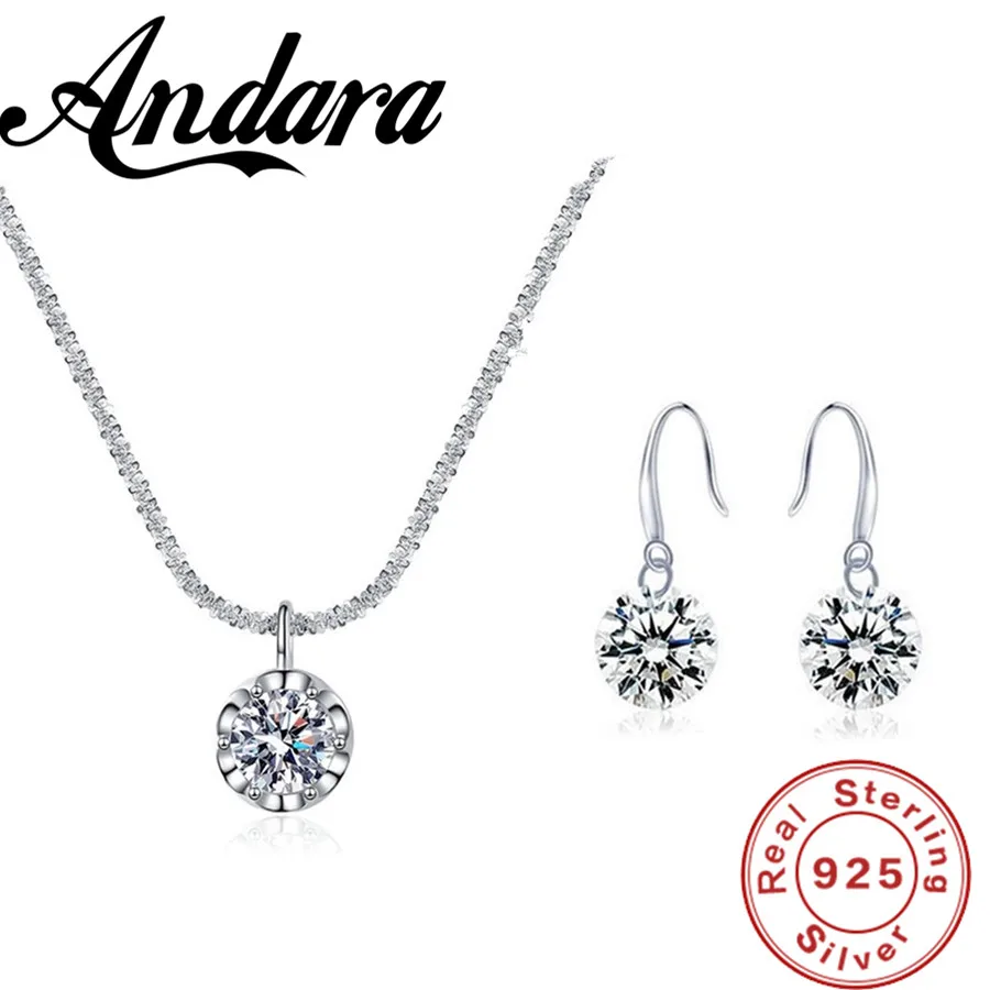 Andara Luxury 925 Sterling Silver AAAAA Zirconia Pendant Necklace Earrings Set Fashion Italian Silve...
