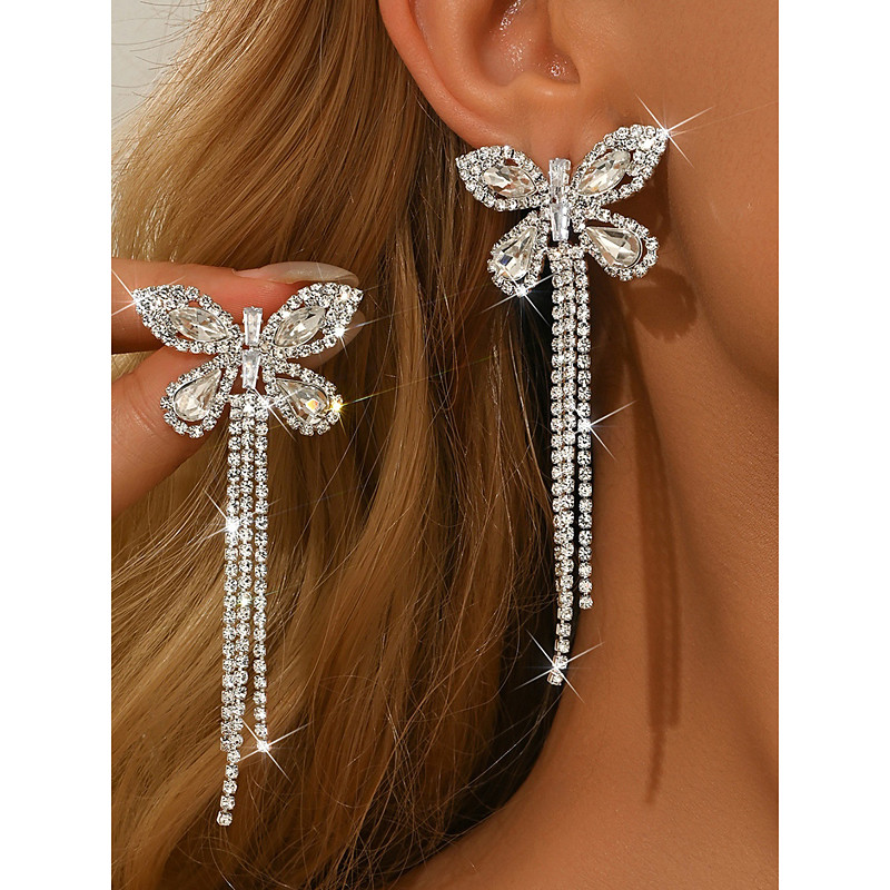 Women's Rhinestone Butterfly Tassel Earrings - Sparkling Statement ...