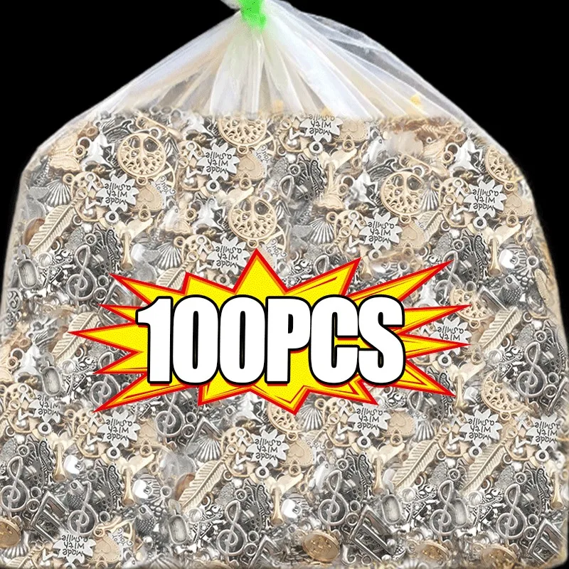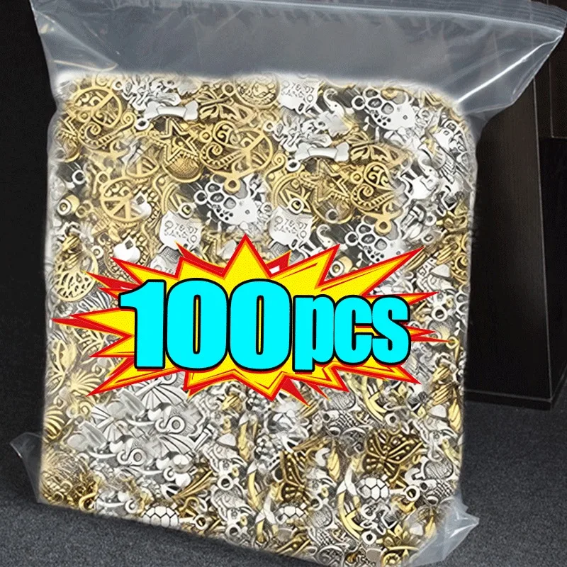 100pcs/bag Tibetan Silver Mixed Pendant Beads Jewelry Bracelets Earrings Necklace Making DIY Craft A...