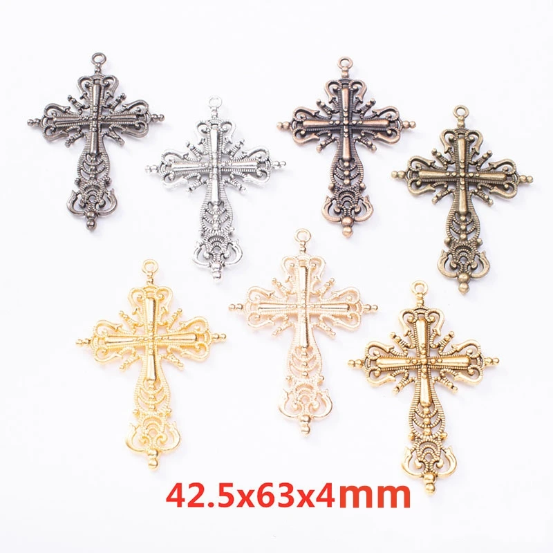 10pcs 42x63mm Gothic Cross Silver Color Dripping Alloy Tibetan Pendants Earring Antique Jewelry Maki...