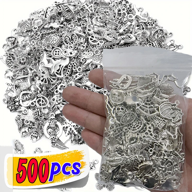 100pcs/bag Tibetan Silver Mixed Pendant Beads Jewelry Bracelets Ear...