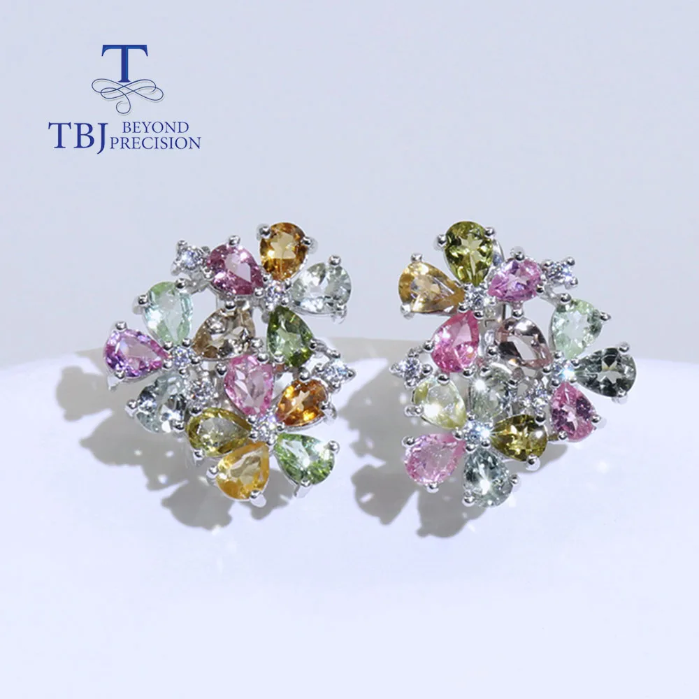 Colorful Brazil Tourmaline Flower Clasp Earring natural gemstones 925 sterling silver fine jewelry f...