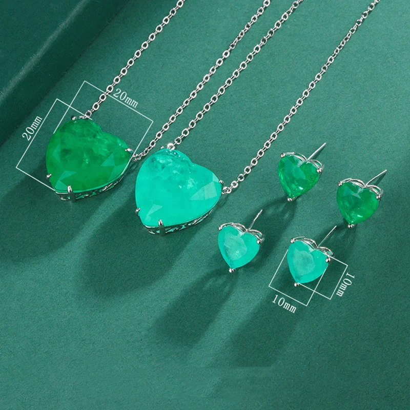 Luxury Silver Color Paraiba Tourmaline Gemstone Heart Necklace Earring for Women Wedding Dinner Part...