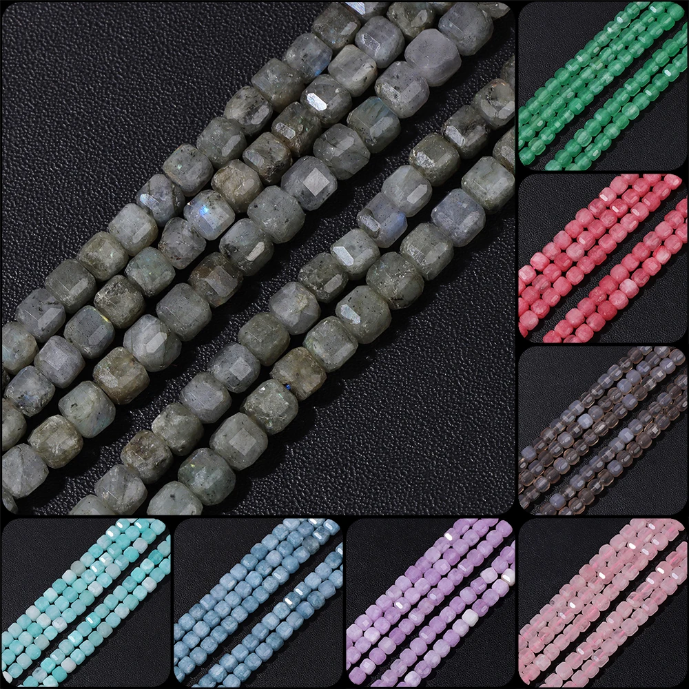 Natural Square Stone Bead 5mm Faceted Cube Amazonite Tourmaline Spacer Beads For Jewelry Making Diy ...