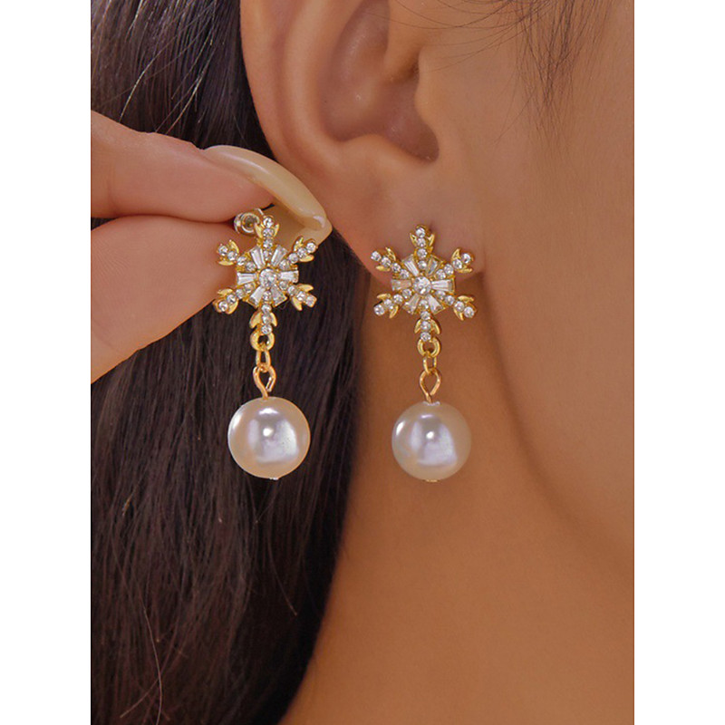 Women's Christmas Snowflake Earrings – Alloy and Faux Pearl M...