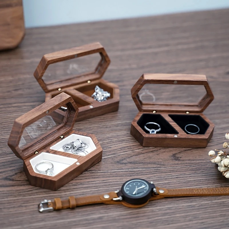 Jewelry Presentation Box Travel for Case Walnut Wood Engagement Ring Box Earring Stud Holder for Cer...