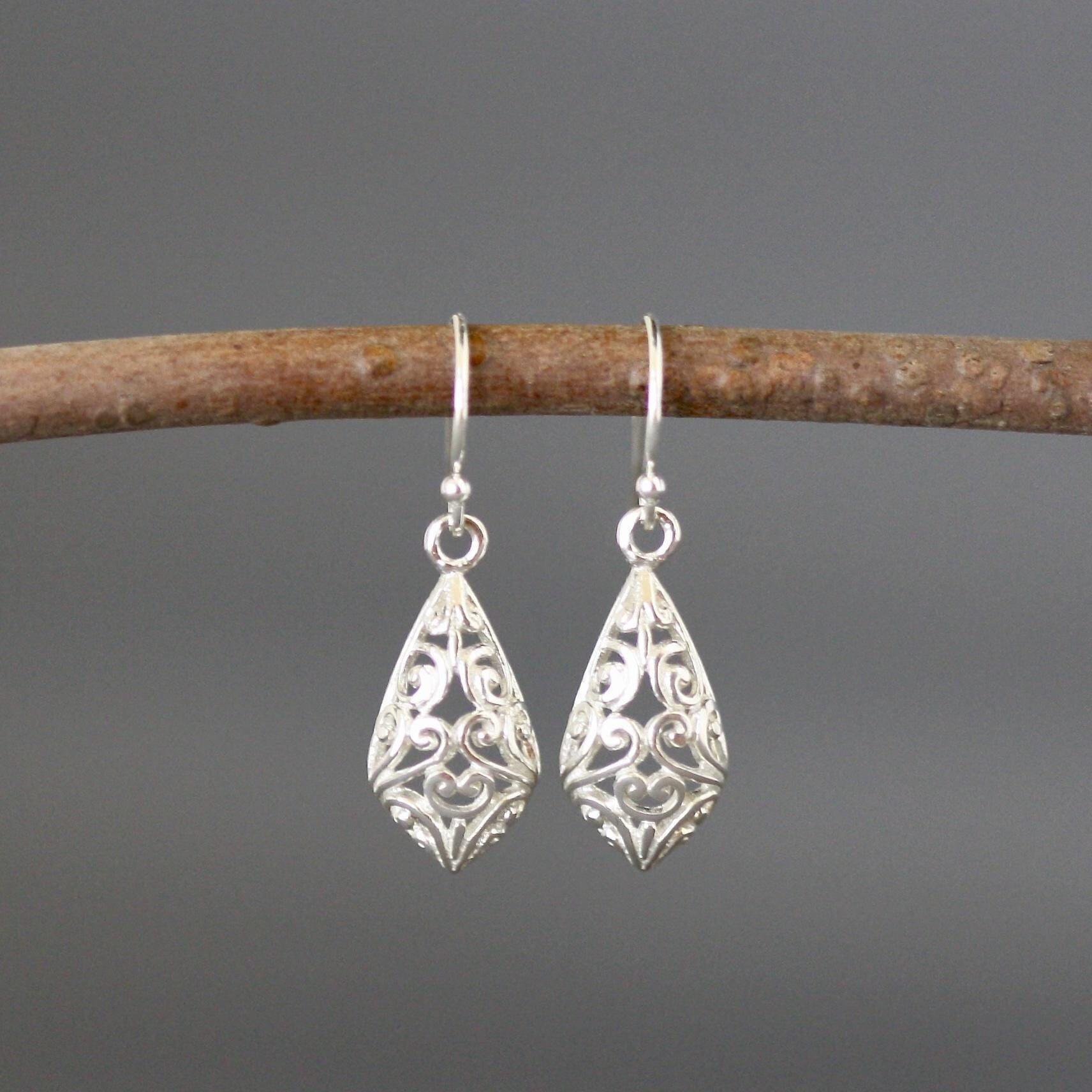 Silver Filigree Earrings - Silver Dangles - Silver Charm Earrings -...