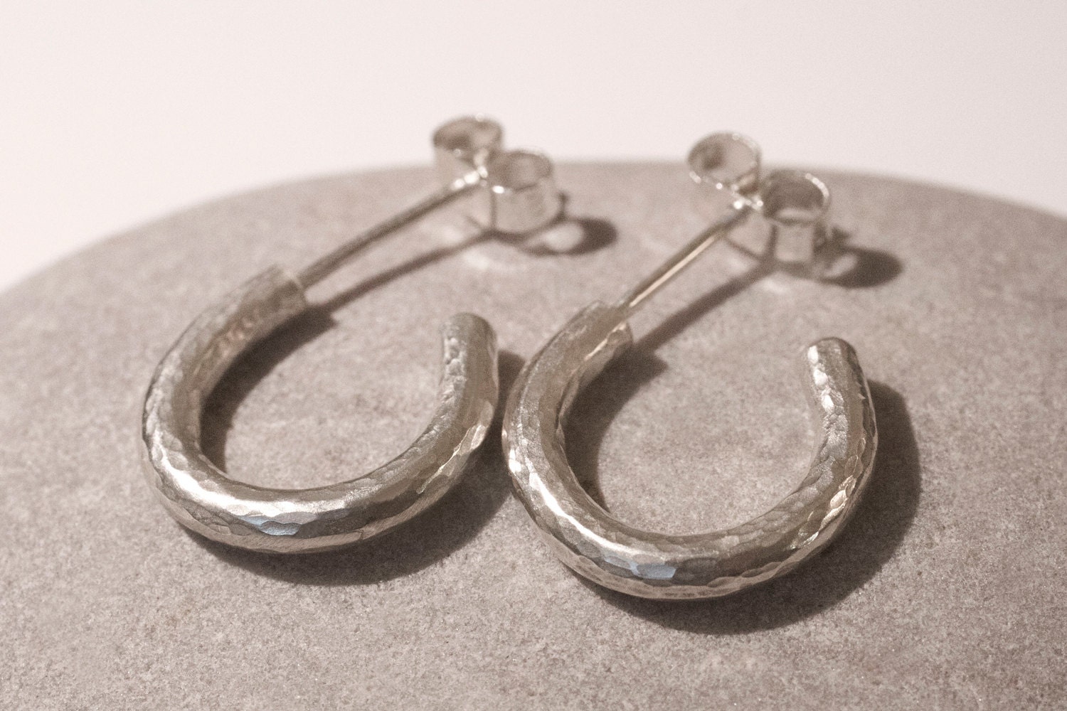 Silver hoop earrings, Solid Silver Hoop Earrings, Hammered Silver E...