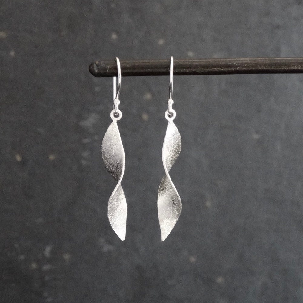 Silver Earrings, Silver Drops, Brushed Silver Earrings, Silver Twis...