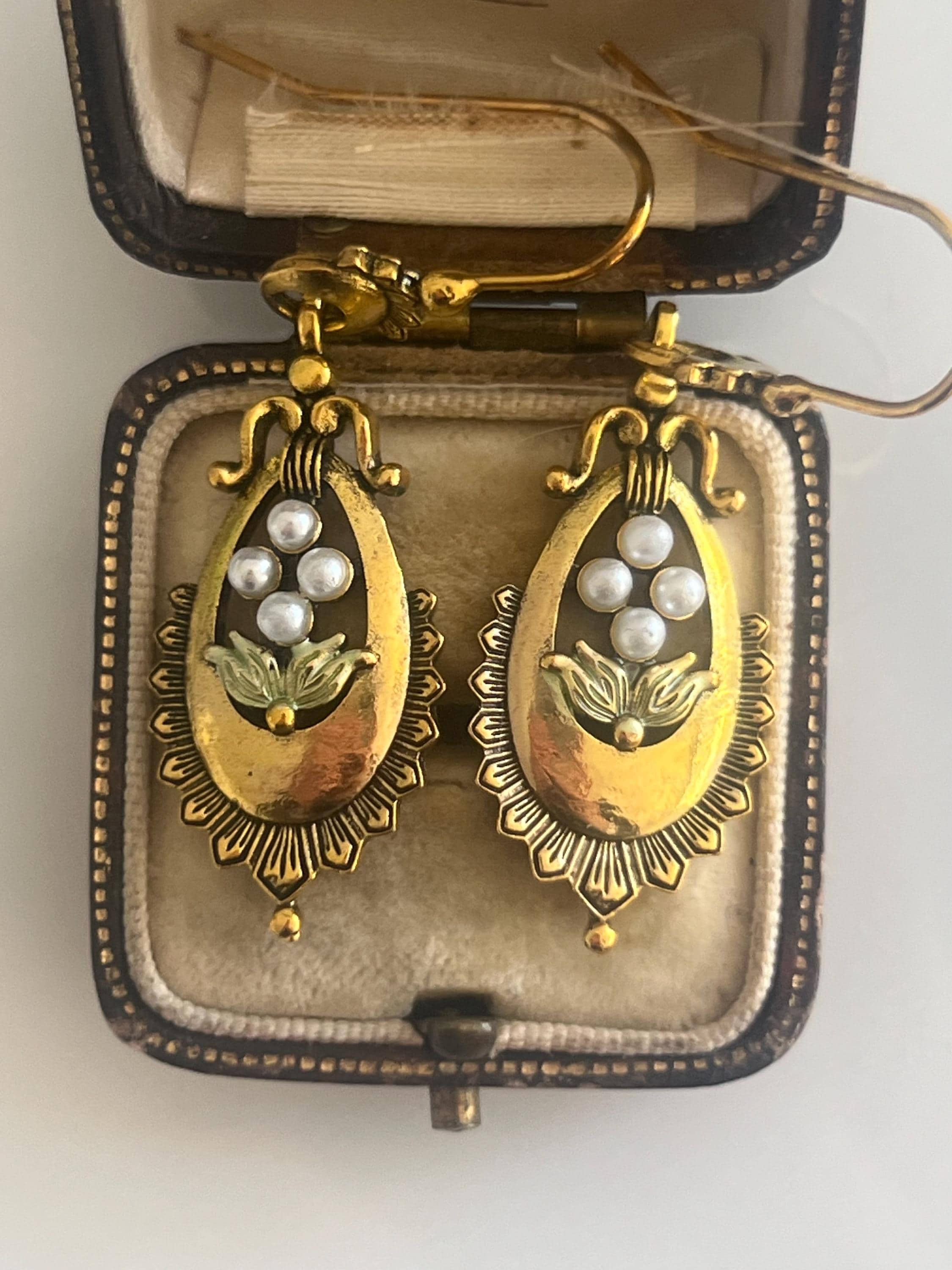 Victorian Style Pearl Earrings, Gold Drop Earrings, Antique Earring...