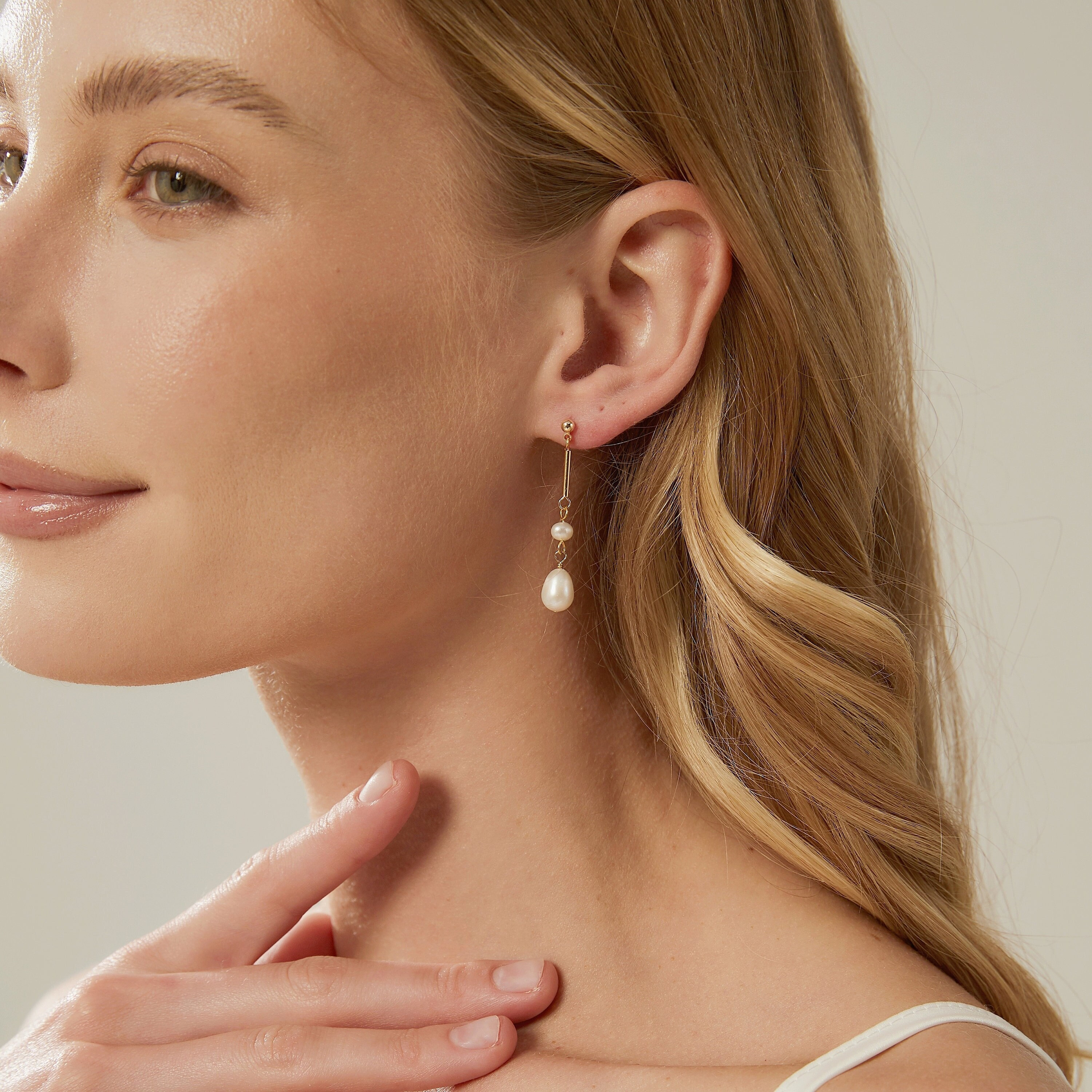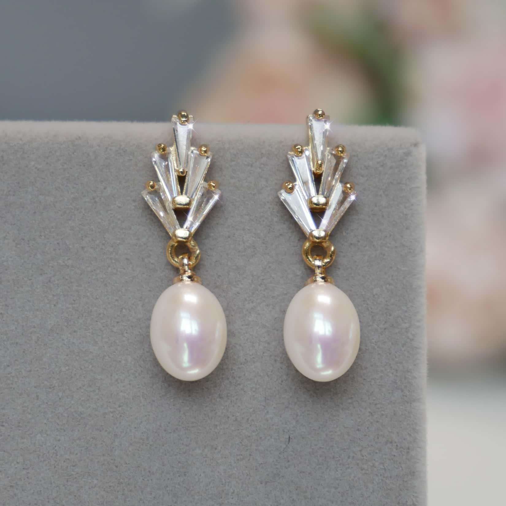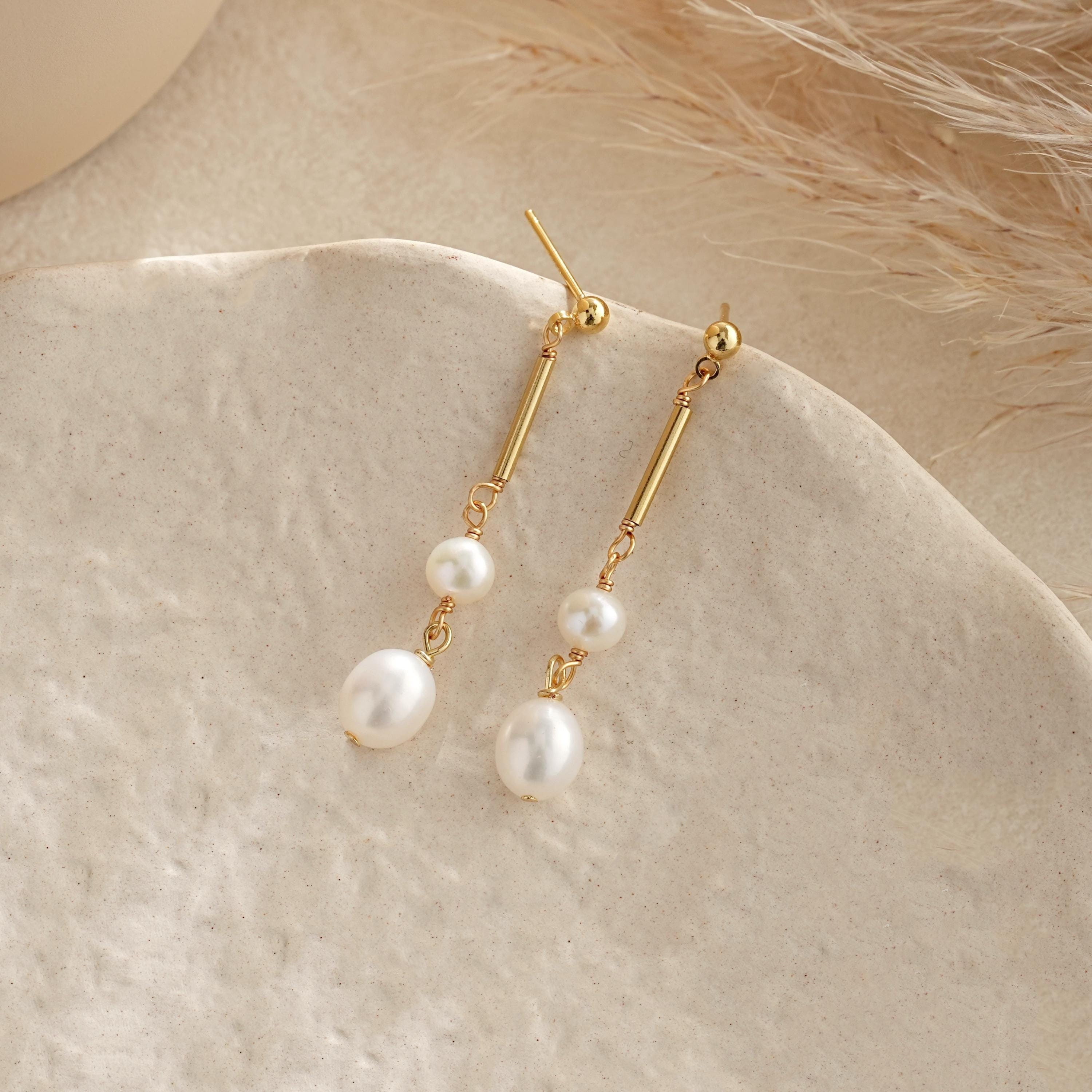 Dainty Freshwater Pearl Drop Earrings,Gold Pearl Dangle Earrings,Pe...
