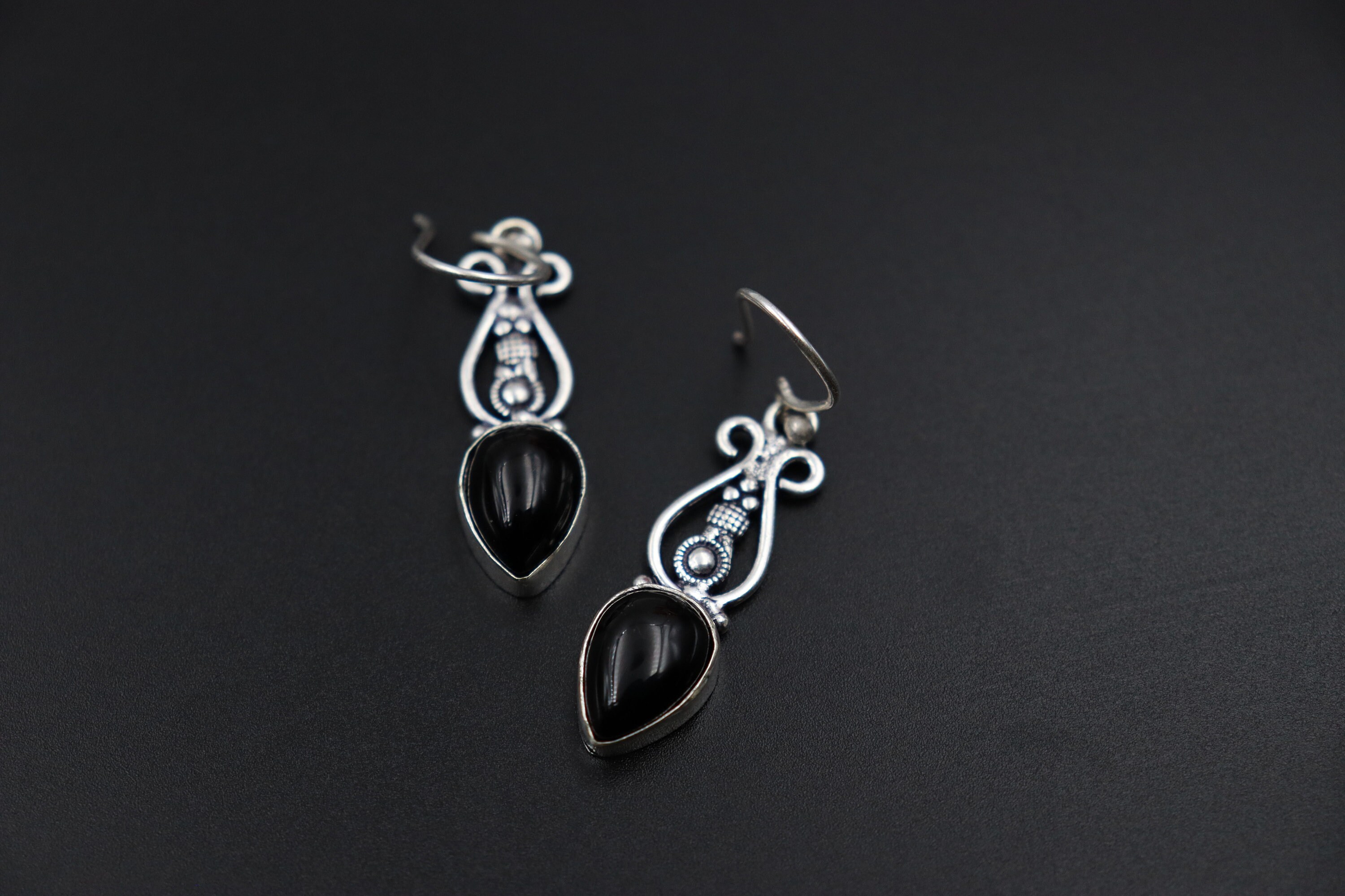 Black Onyx Gemstone Handmade Earrings-Silver Oxidized gemstone Earr...