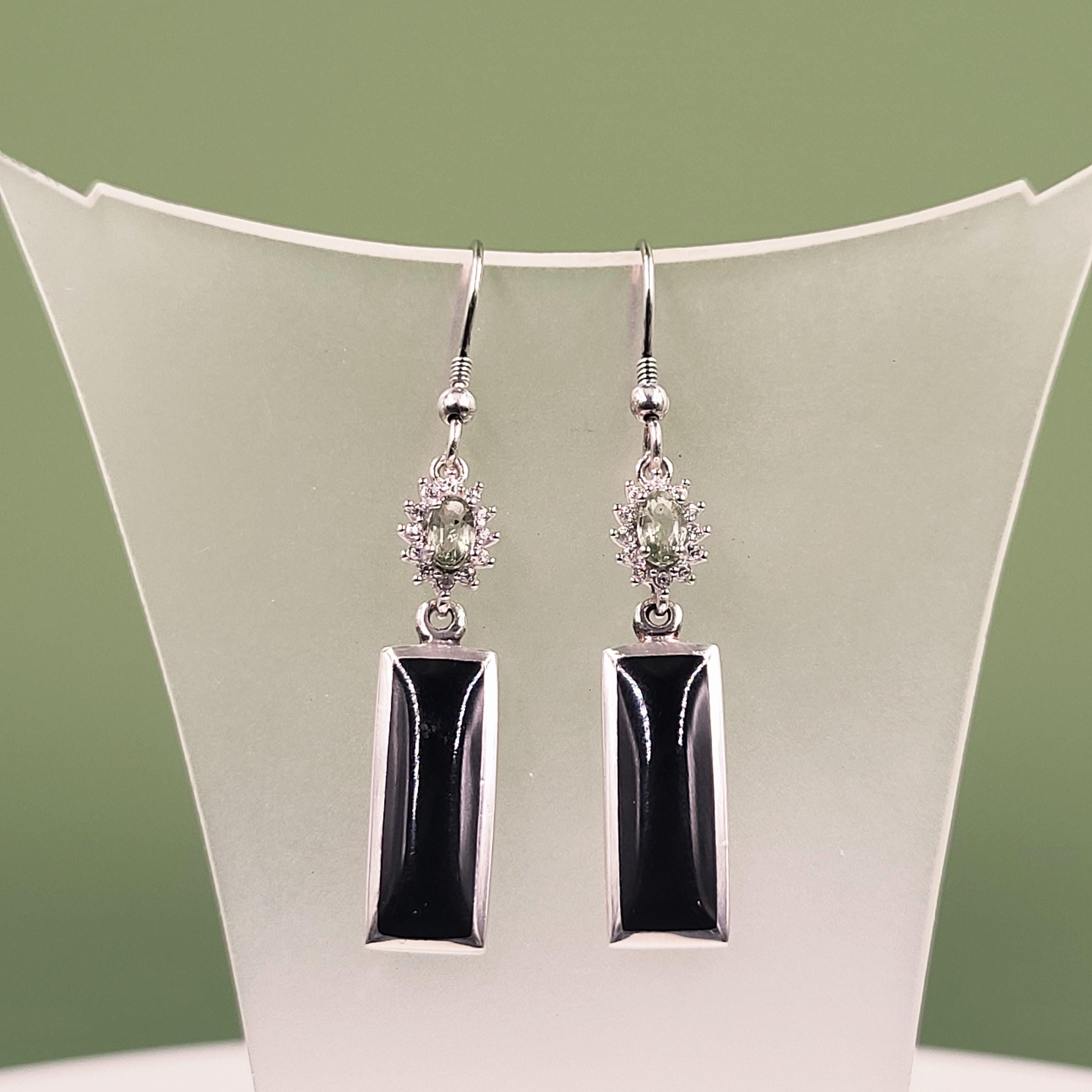 Sapphire Jet Silver Earrings, Precious Green Sapphire, Natural Whit...