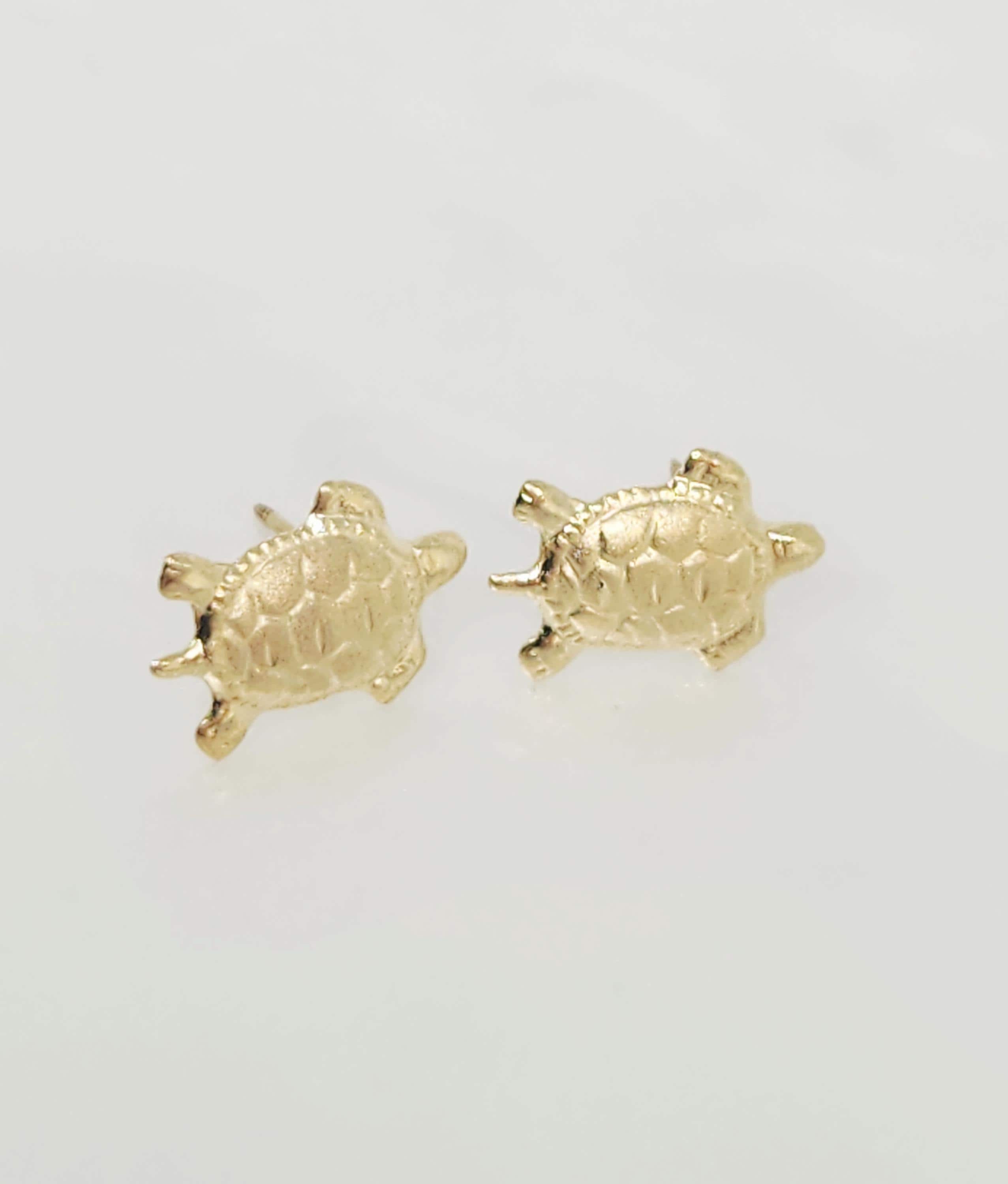 14K Yellow Gold Small Turtle Earrings, Animal Jewelry, Ocean Jewelr...
