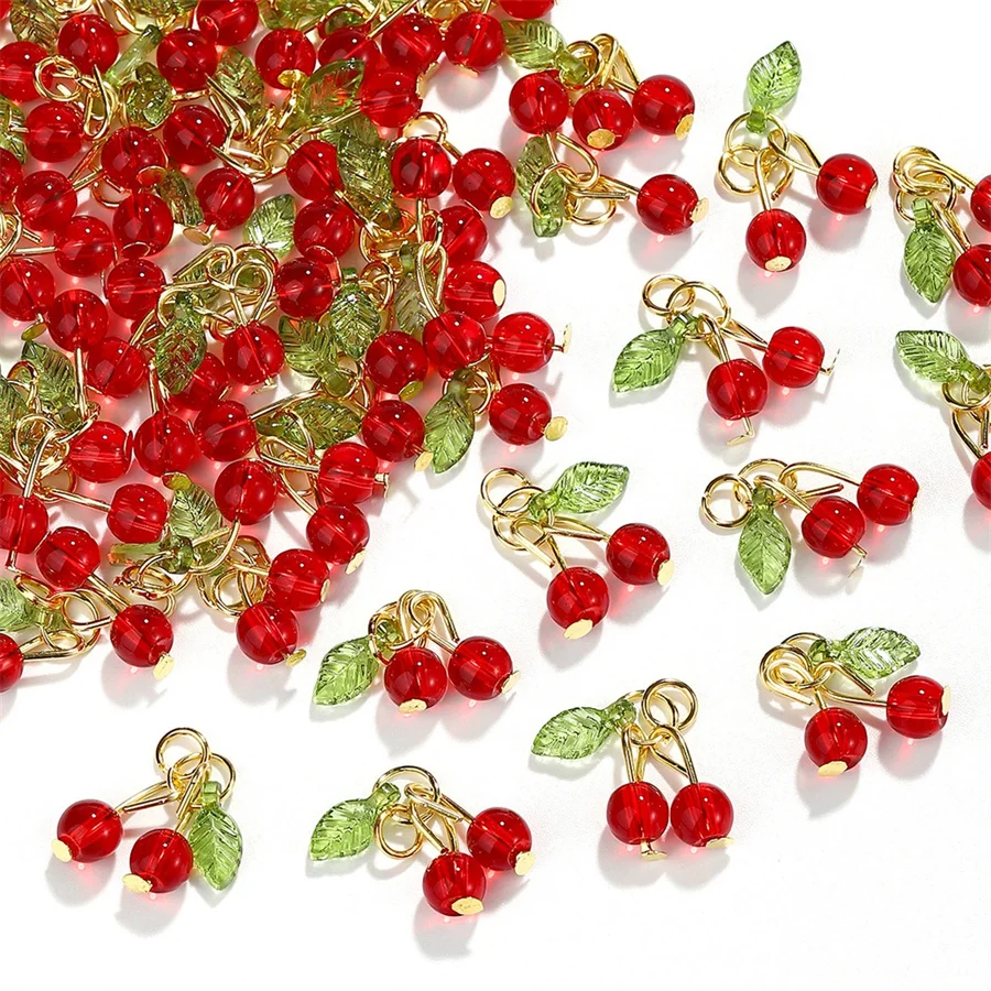 Three dimensional cherry fruit pendant pendant DIY bracelet necklac...