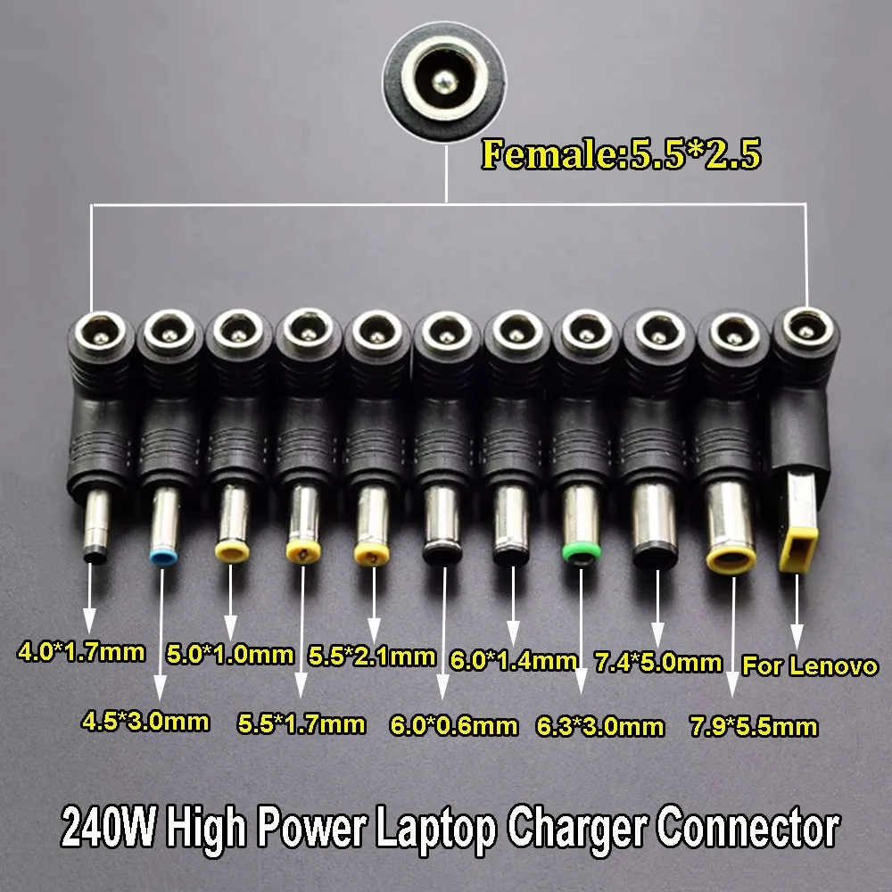 1PCS 240W DC 5.5*2.5MM Female to DC4.0*1.7 4.5*3.0 5.0*1.0 5.5*1.7mm 7.4 for HP for Lenovo Square Ma...