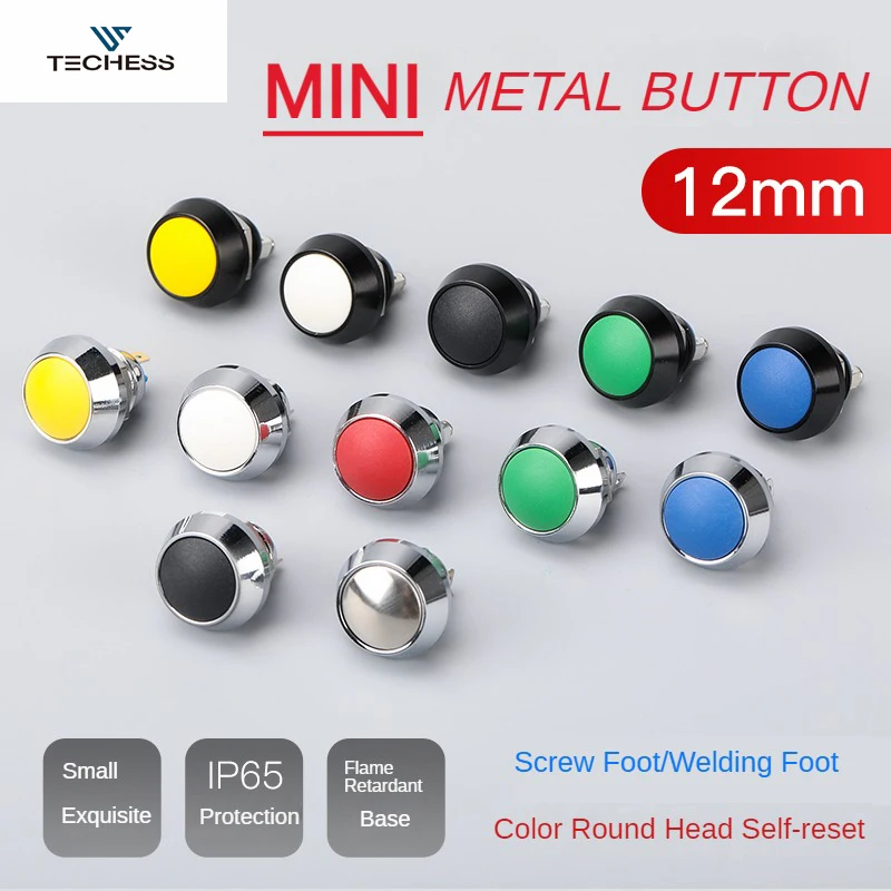 12MM Small Mini Metal Push Button Switch 12V 220v On Off Start Stop Momentary Colorful Black Oxide W...