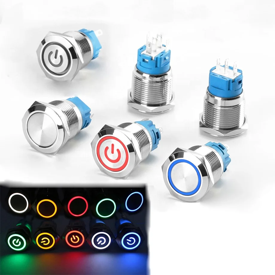 12/16/19/22mm Waterproof Metal Push Button Switches LED Light Momen...