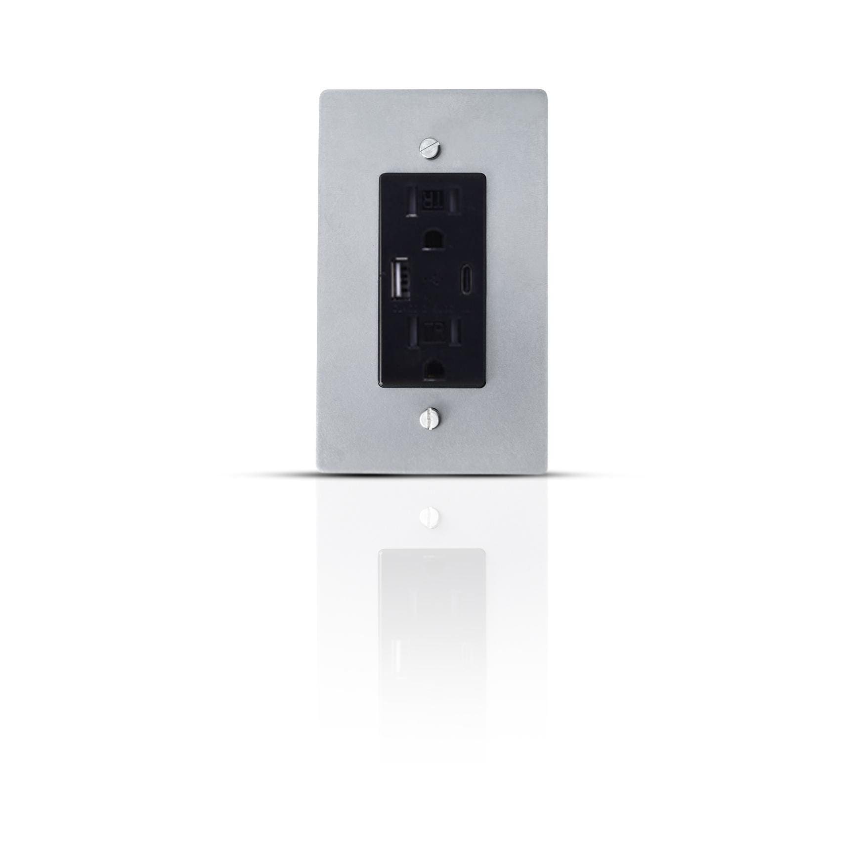 Stainless Steel Outlet Cover with 15 Amp Socket | Single Gang Decorative Wall Plate | GFCI /USB type...