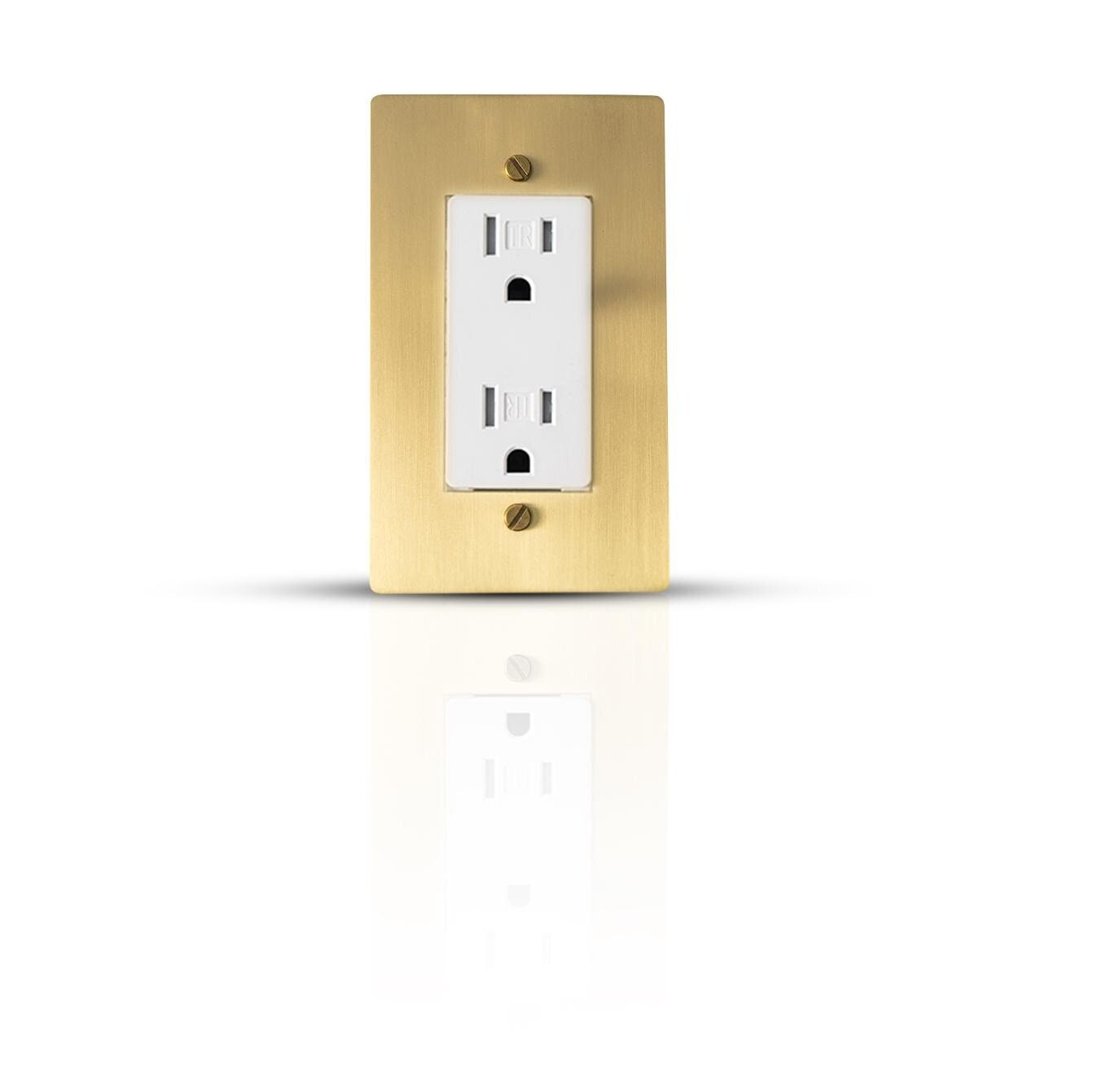 Brushed Brass Outlet Cover with White 15 Amp Socket | Single Gang Decorative Wall Plate Elevate your...