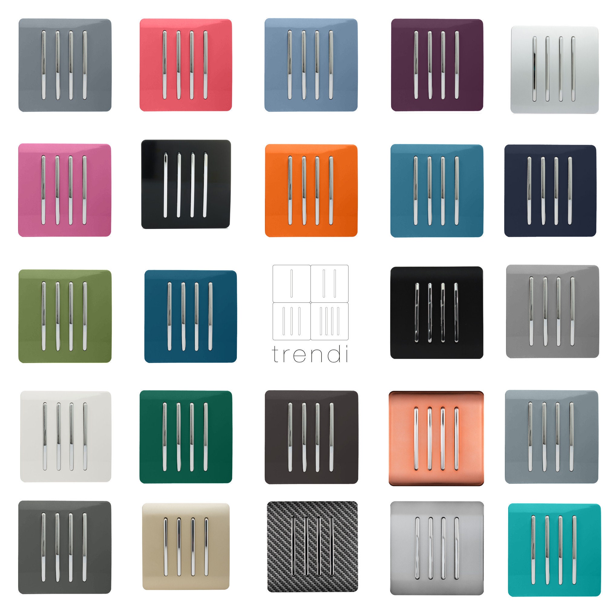 Trendi 4 Gang 2 Way 10 Amp Indoor Screwless Modern Designer Decorat...