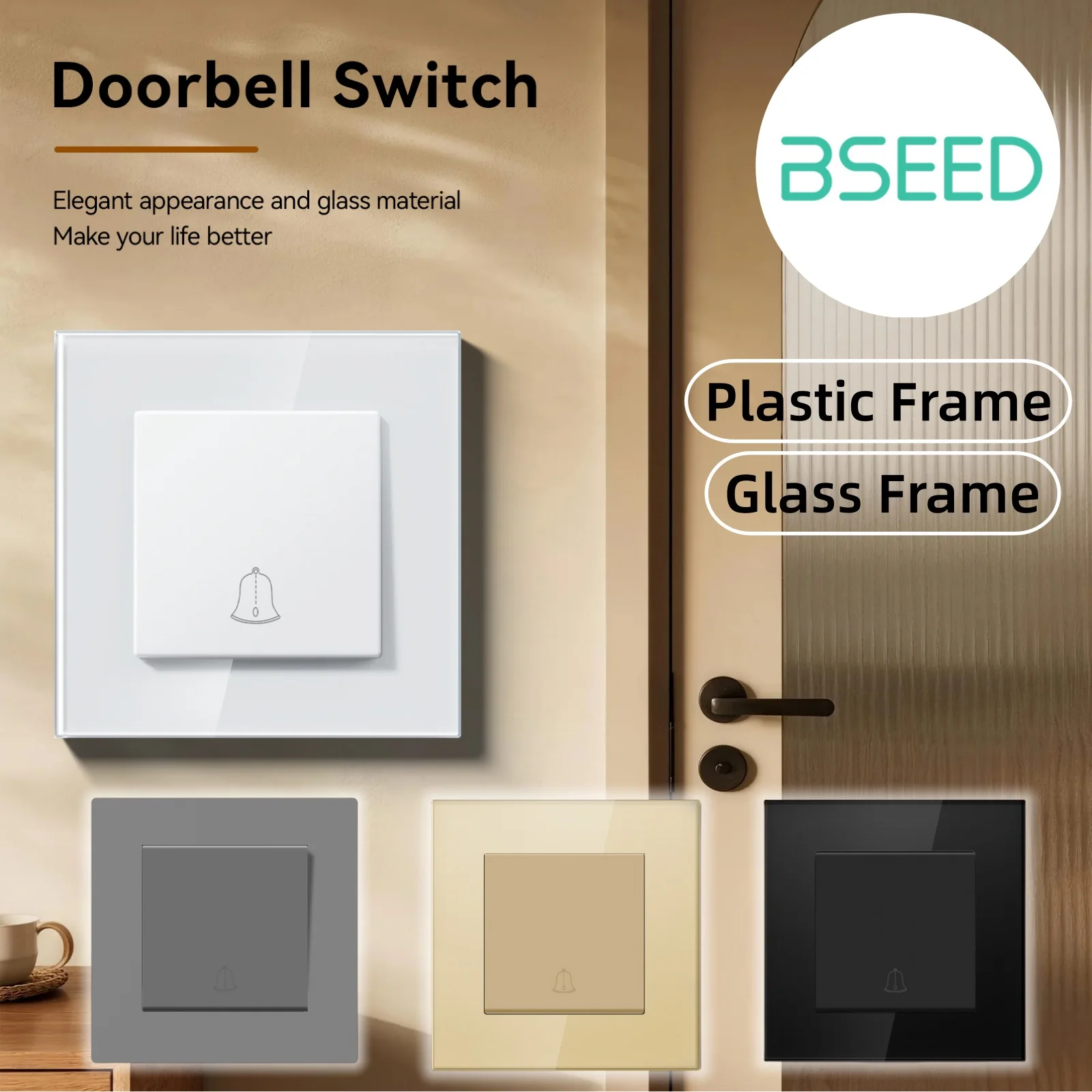 BSEED Mechanical Doorbell Switch Push Button Wall Switch Glass/Plastic Frame EU Standard White Black...