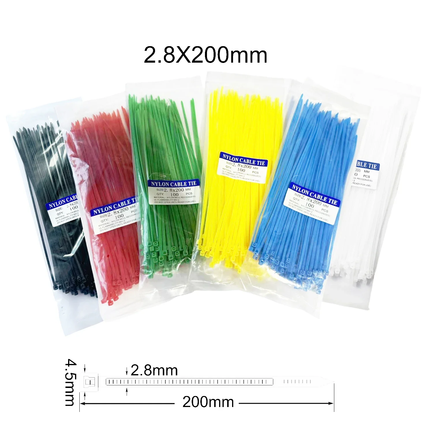 100Pcs/lot Width 2.8mm Length 200mm Cable Tie Self-Locking Nylon Tie Fastening Ring Zip Wraps Strap ...