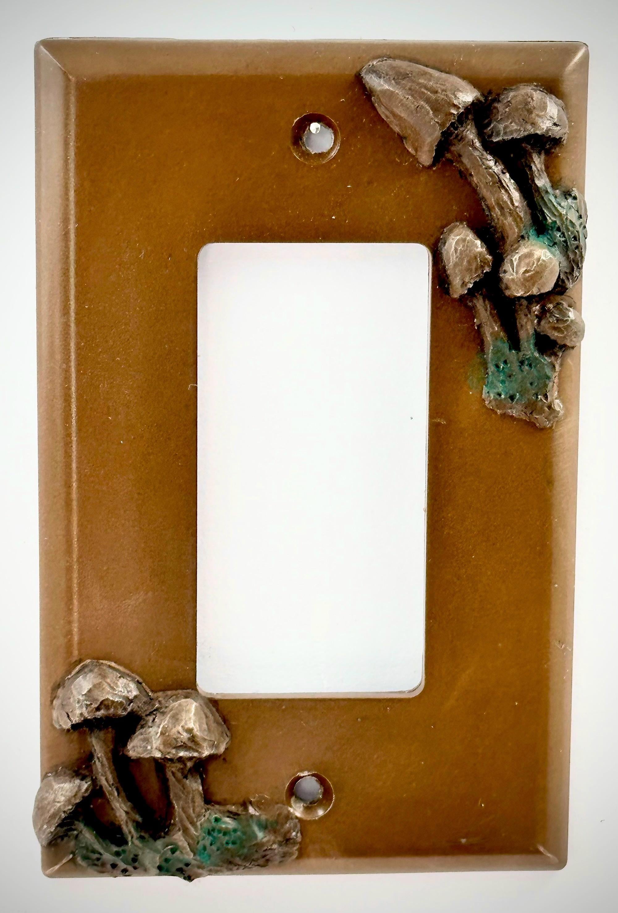 "Unique hand sculpted cold cast bronze single rocker switch pate cover with mushroom design. Ca...