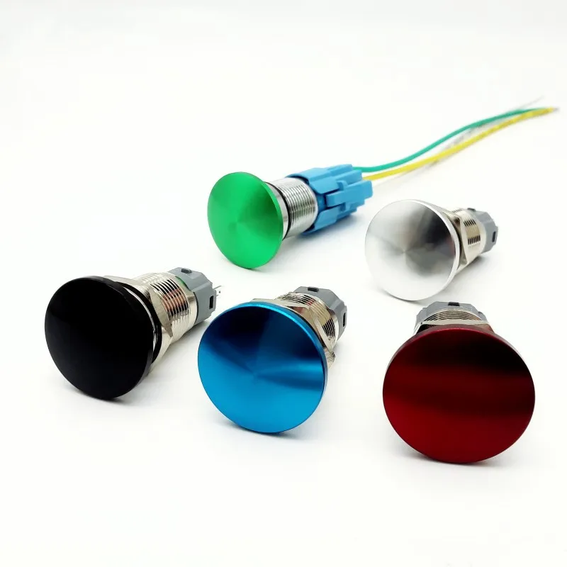 22MM Mushroom Latching Push Button Switch PIN Terminal 16mm 19mm 1NO1NC IP65 Waterproof Matel Switch