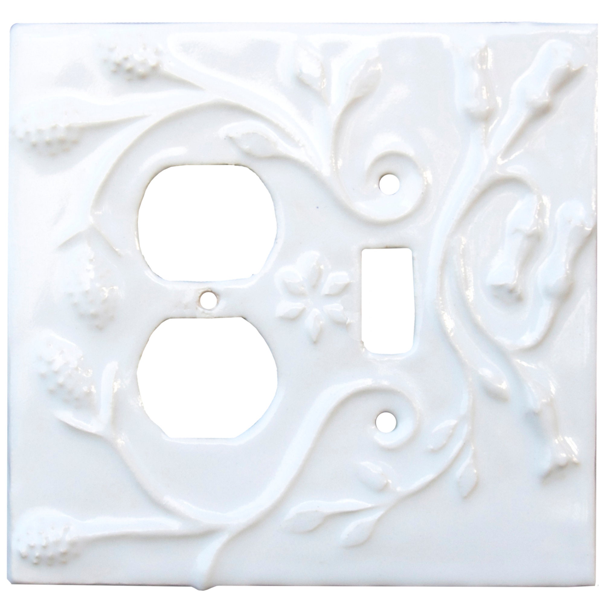 MADE TO ORDER: Botanical Duplex Outlet + Single Toggle Ceramic Comb...