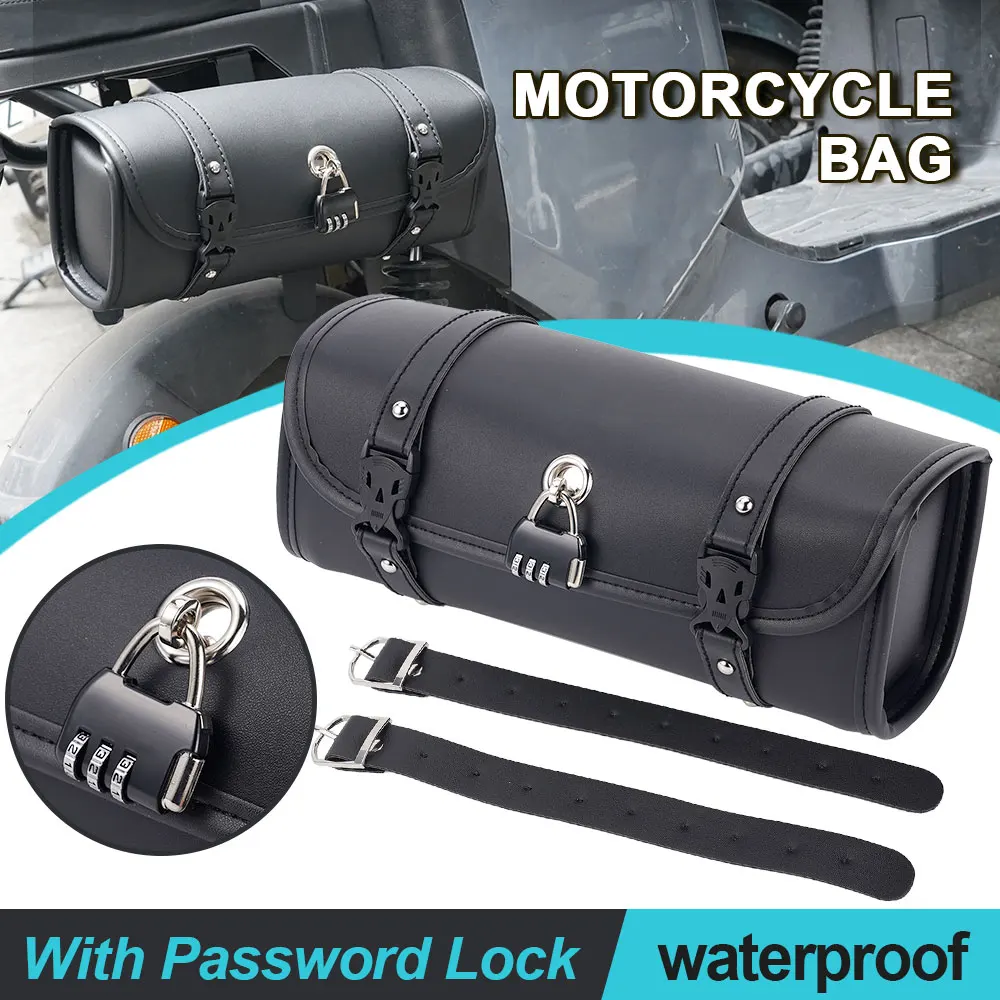 Motorcycle Side Bag Waterproof Tool Bag Saddle Bag PU Leather Trave...