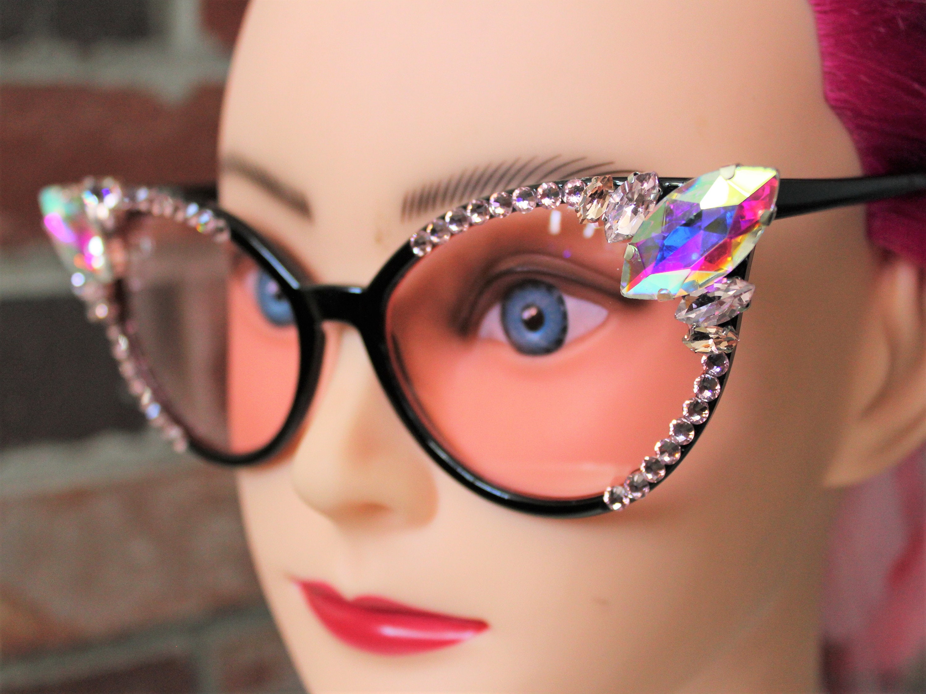 "Check out these sexy black cat eye frames. Black Zyl (very durable plastic) with atomic spear ...