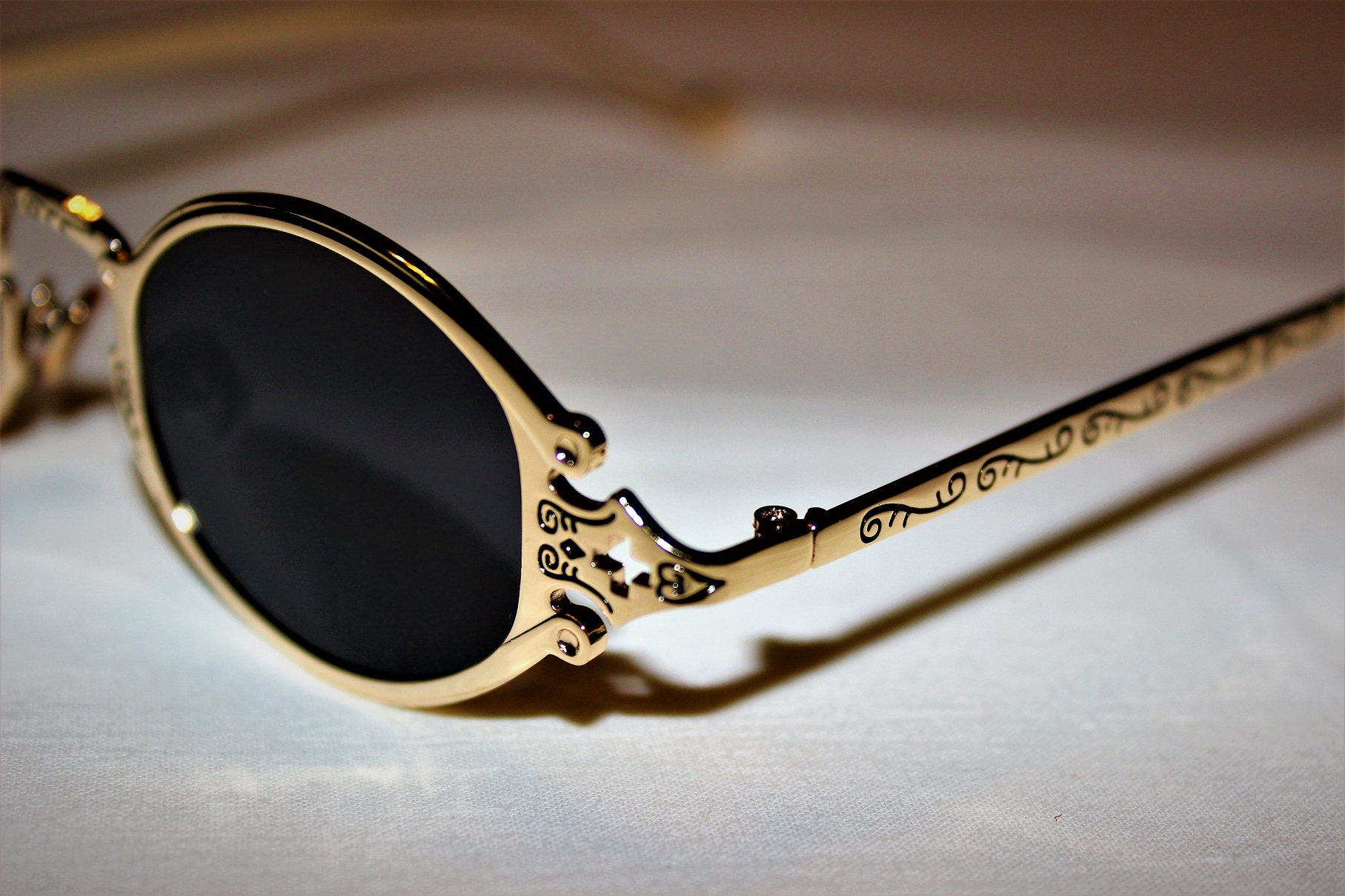 Sunglasses design recalls Gaultier, Matsuda. Frame - gold, gray lenses. manufacturing South Korea.Re...