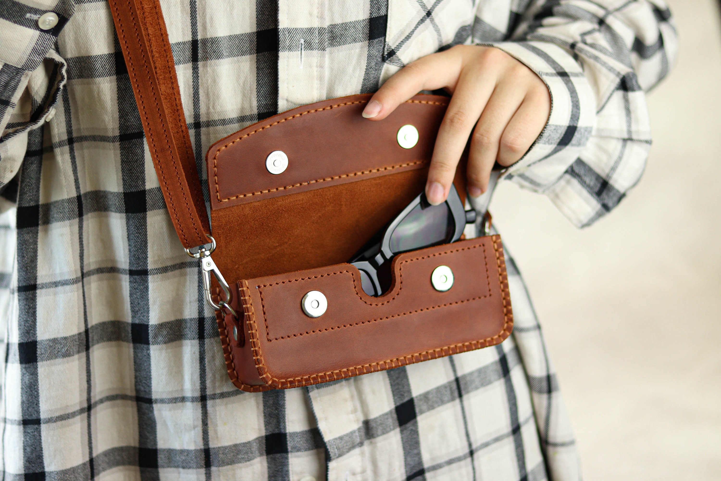 Handmade Leather Glasses Case: Personalized Crossbody Eyeglasses Ho...