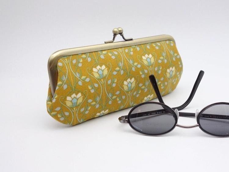 Metal frame eyeglasses purse, mustard yellow & light blue, case...