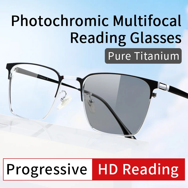 Photochromic Progressive Multifocal Reading Glasses,Rectangular Fra...