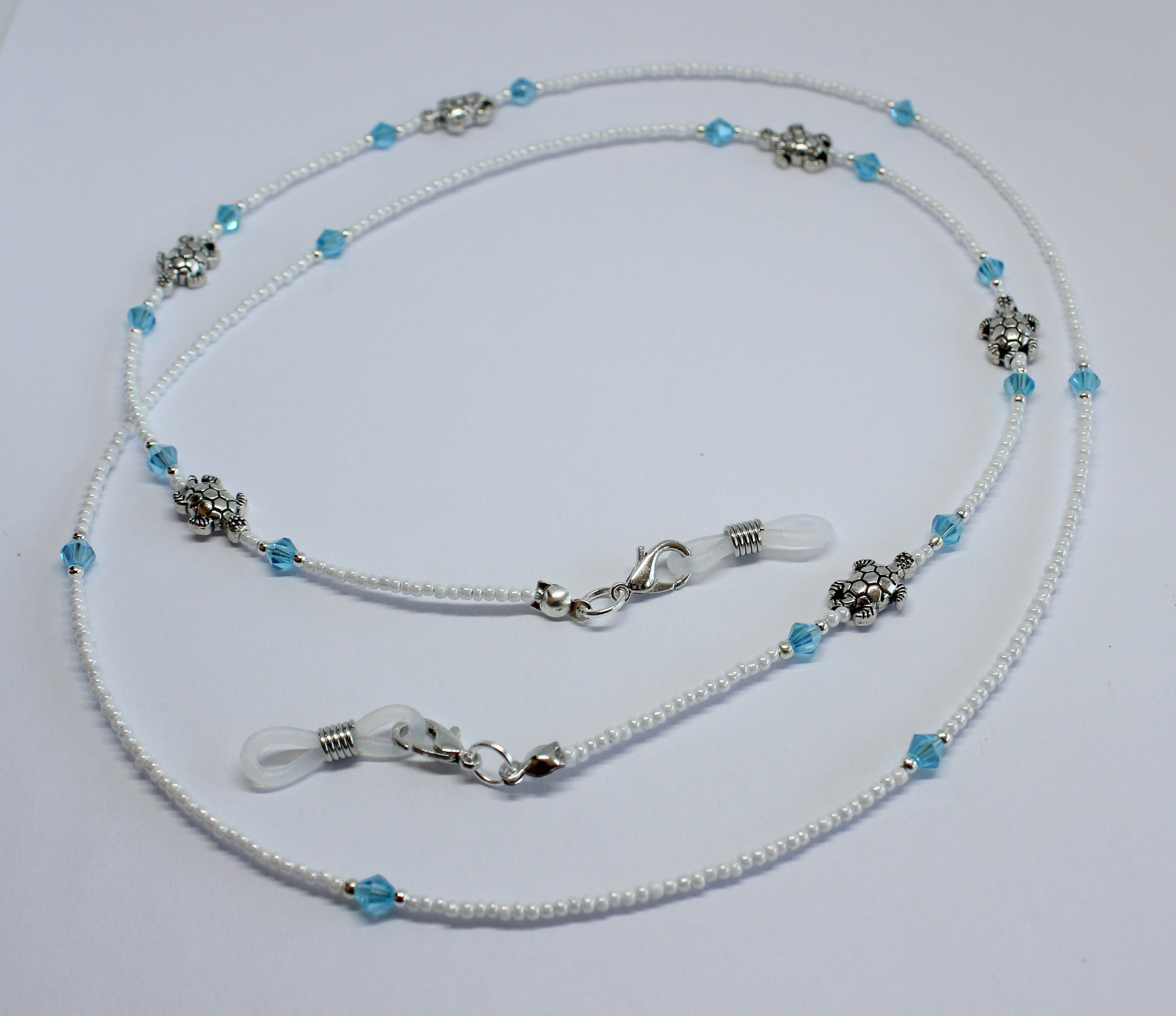 "Beautiful tortoise turtle beads glasses chain. Made using glass seed beads and 4mm crystal bic...