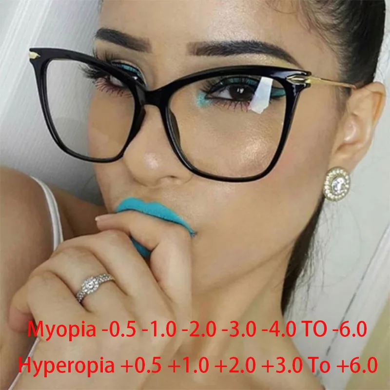 Cat Eye Oversize Frame Clear Glasses Myopia Nerd Spectacles -0.5 -1.0 -2.0 to -6.0, Big Hyperopia +0...