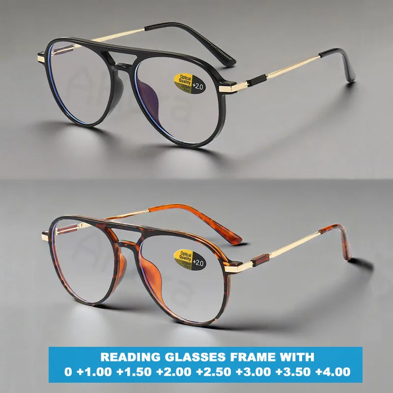 Vintage Double Beam Reading Glasses Unisex Hyperopia Presbyopia Diopters Glasses Frame Anti Blue Lig...