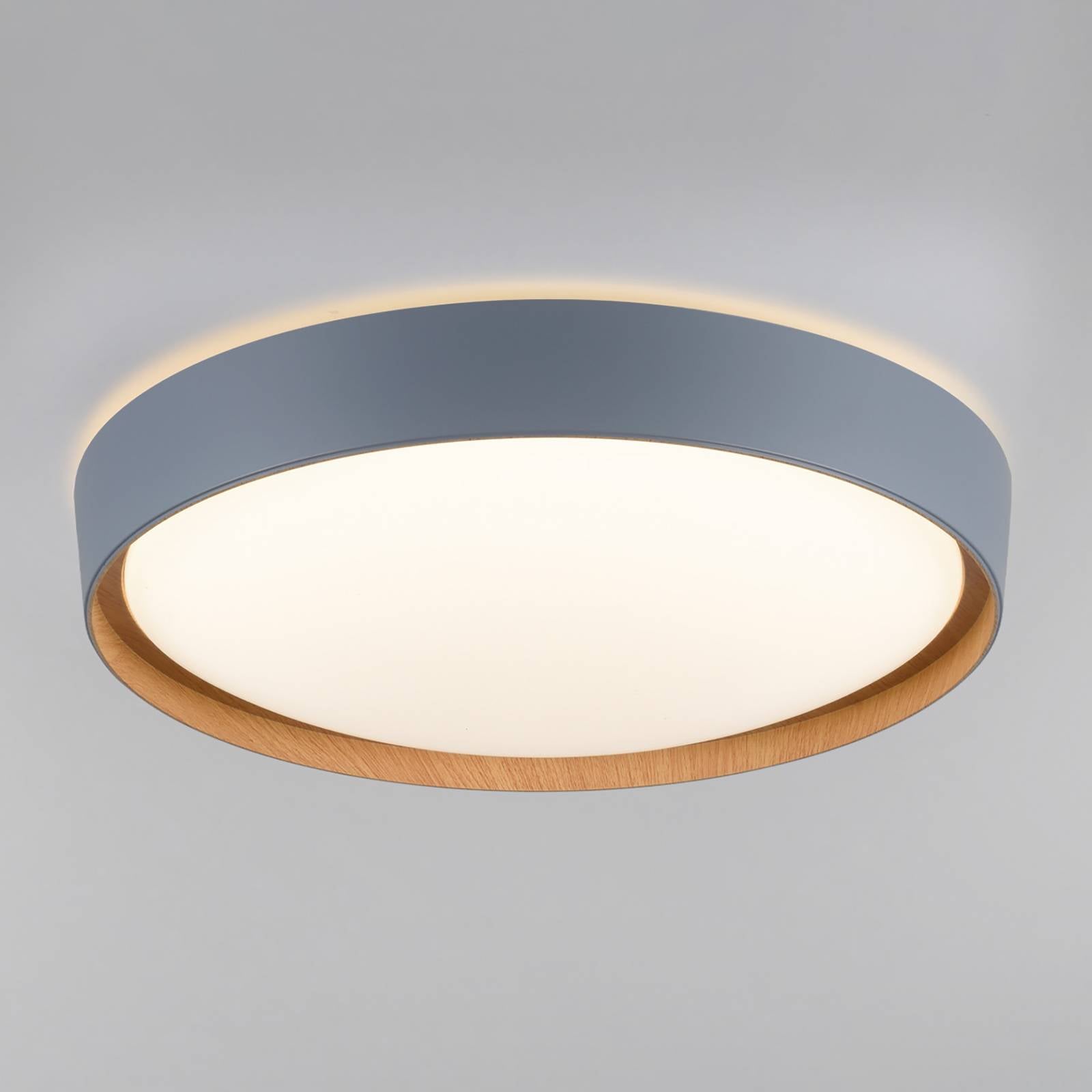 The round LED ceiling light Q-BILA convinces with its modern design, which is rounded off by a wood ...