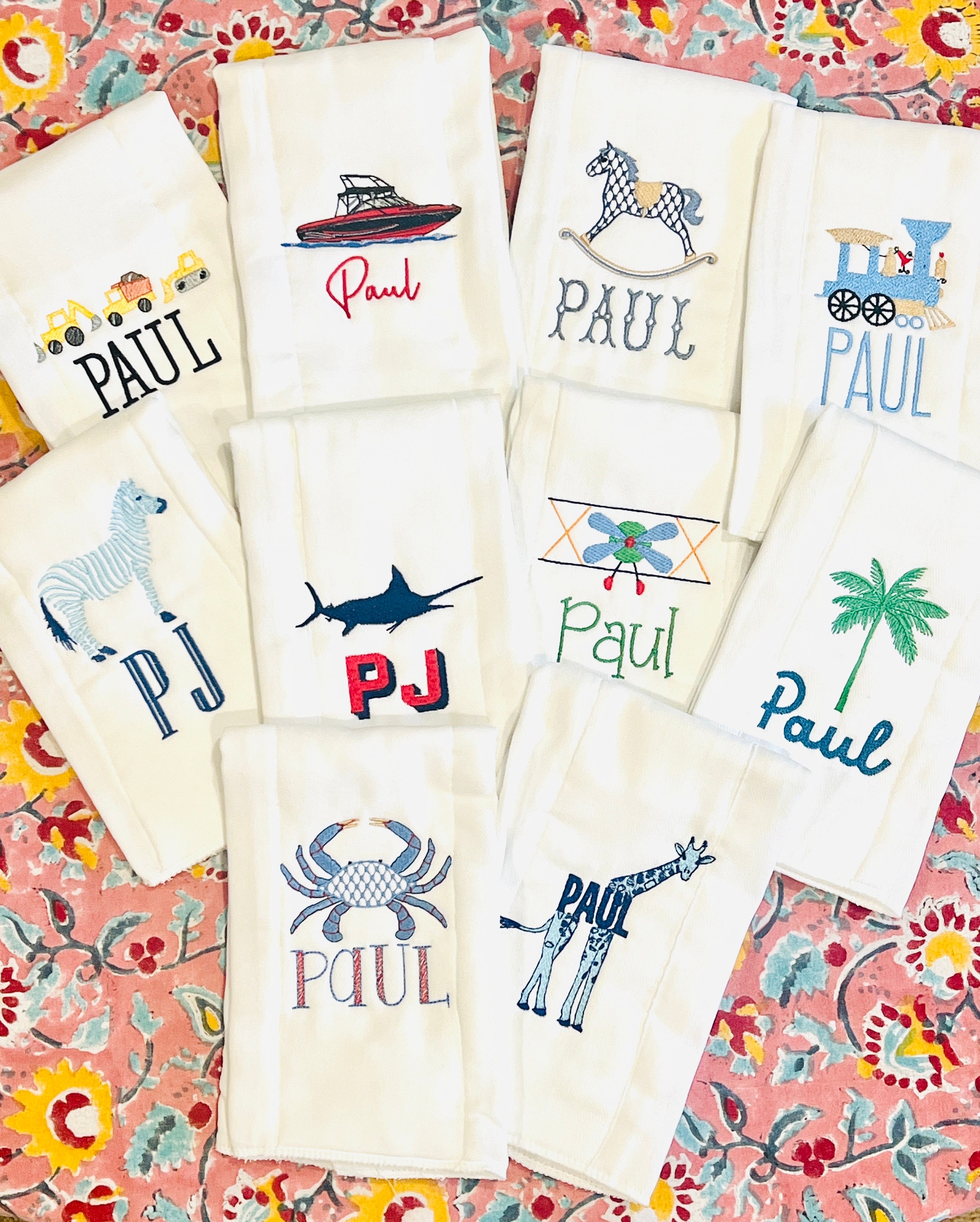 "You can never have enough burp cloths! Pick your THREE favorite patterns for an adorable gift-...