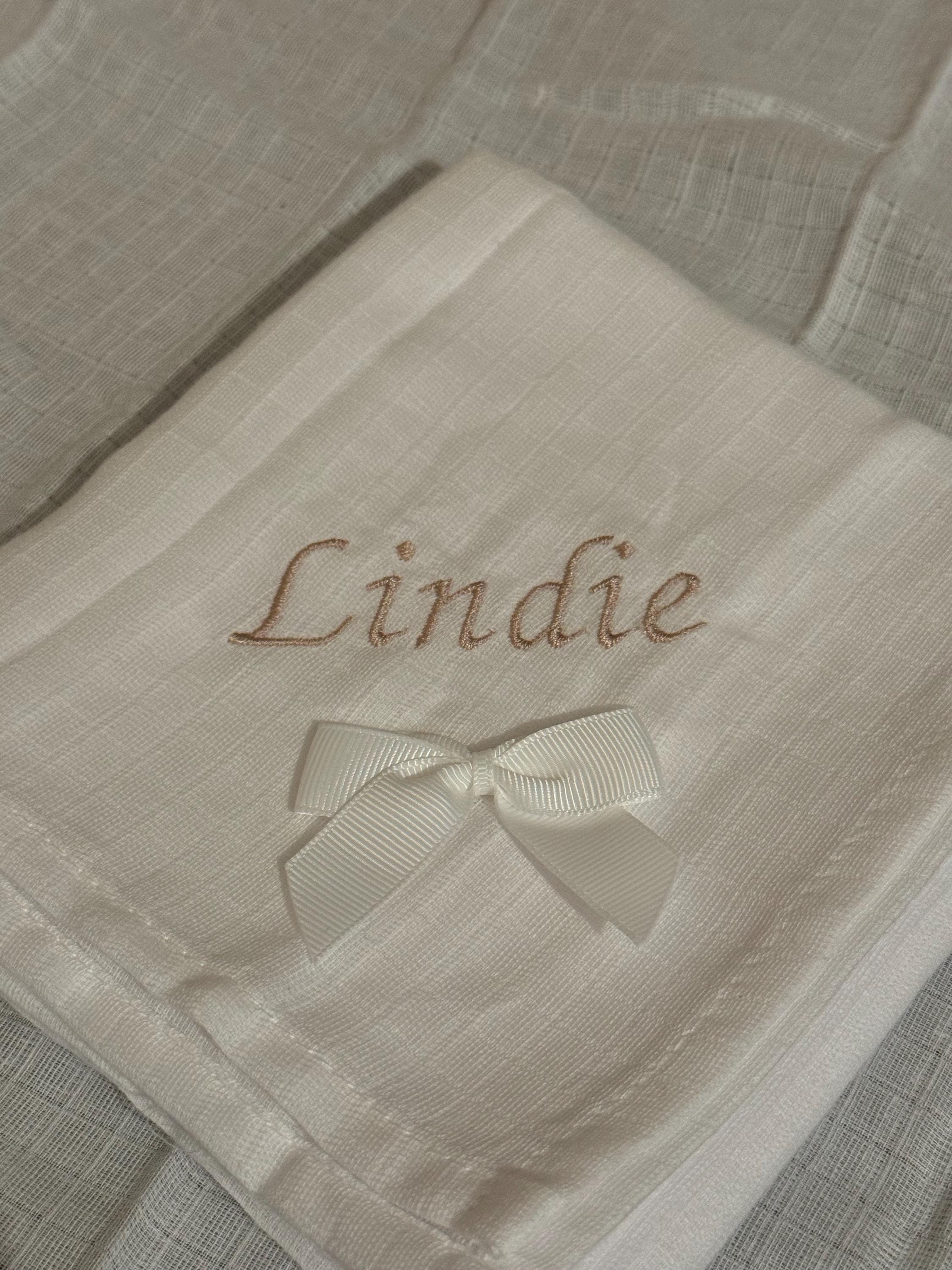 Personalised Embroidered White Muslin Cloth. Thread colour of your choice. If no colour is provided ...