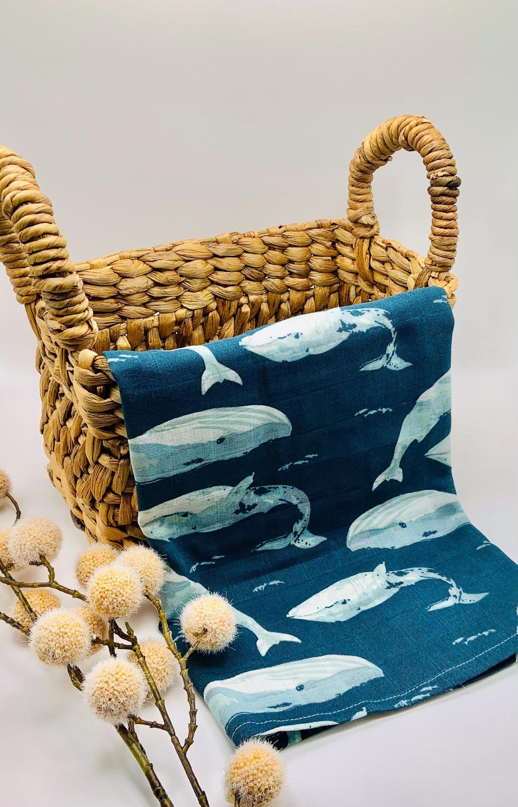 Blue Sea Whale Cotton Muslin Square - Baby Burp Cloth - Baby Bandan...